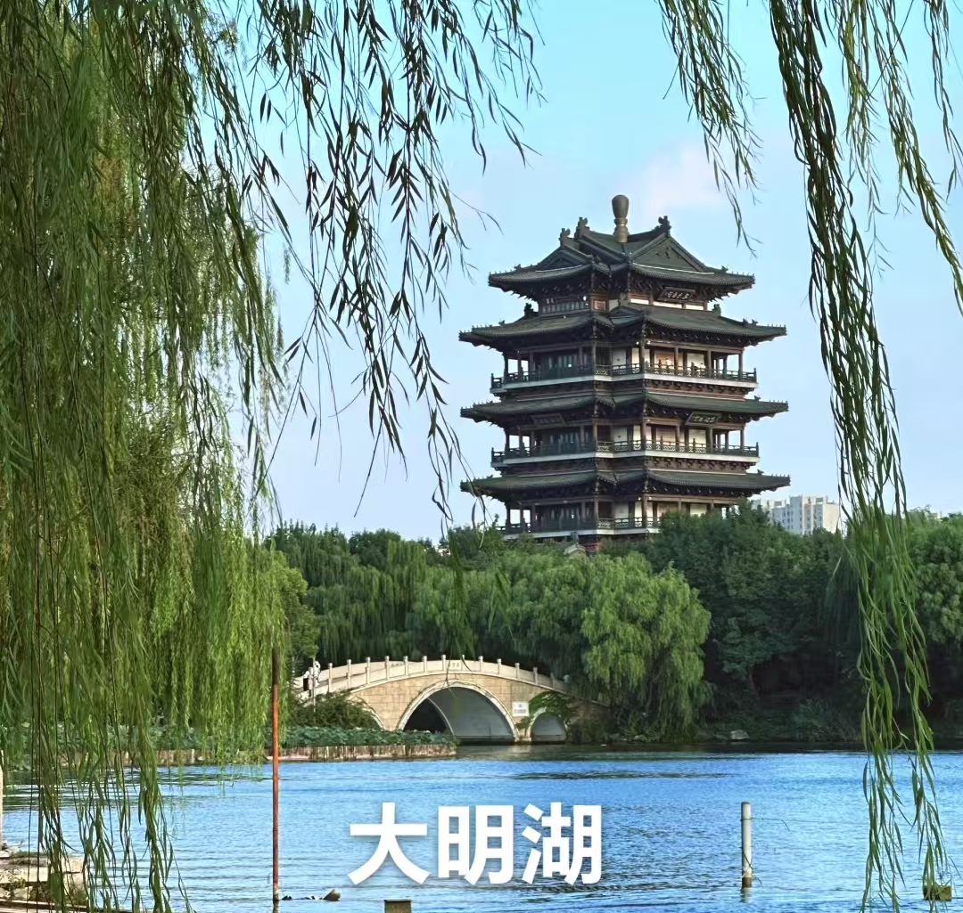 湖城相依:由泉水汇流而成的大明湖,是“中国第一泉水湖”。 “四面荷花三面柳,一城山色半城湖”,湖水与柳荷共同构成一幅美好画卷,也赋予了济南人开放包容的格局。