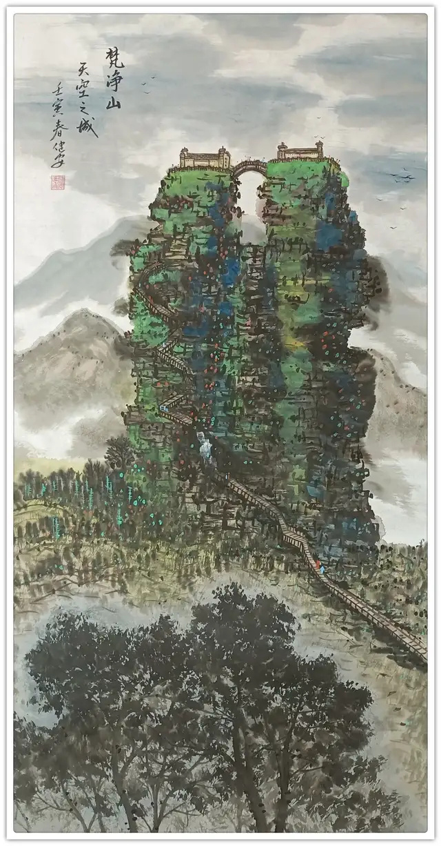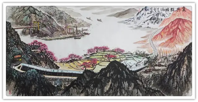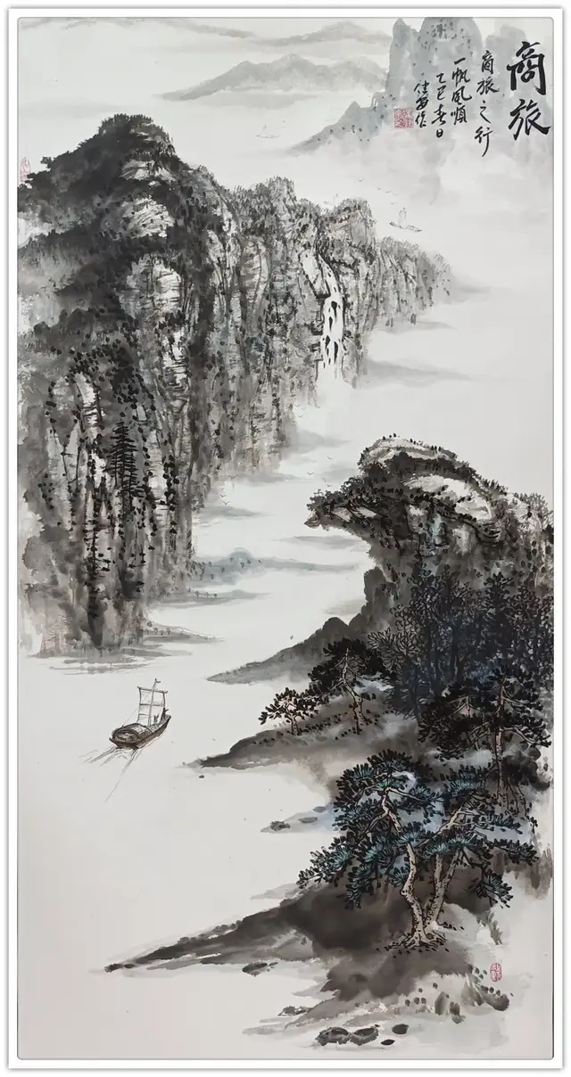 山水画里,他以宏大的视野和深邃的意境,描绘出祖国山河的壮丽与秀美。在传承传统山水画技法的基础上,融入现代绘画理念,使作品更具空间感和层次感,彰显出中华民族对大自然的敬畏与热爱。