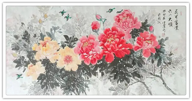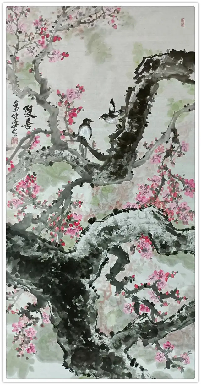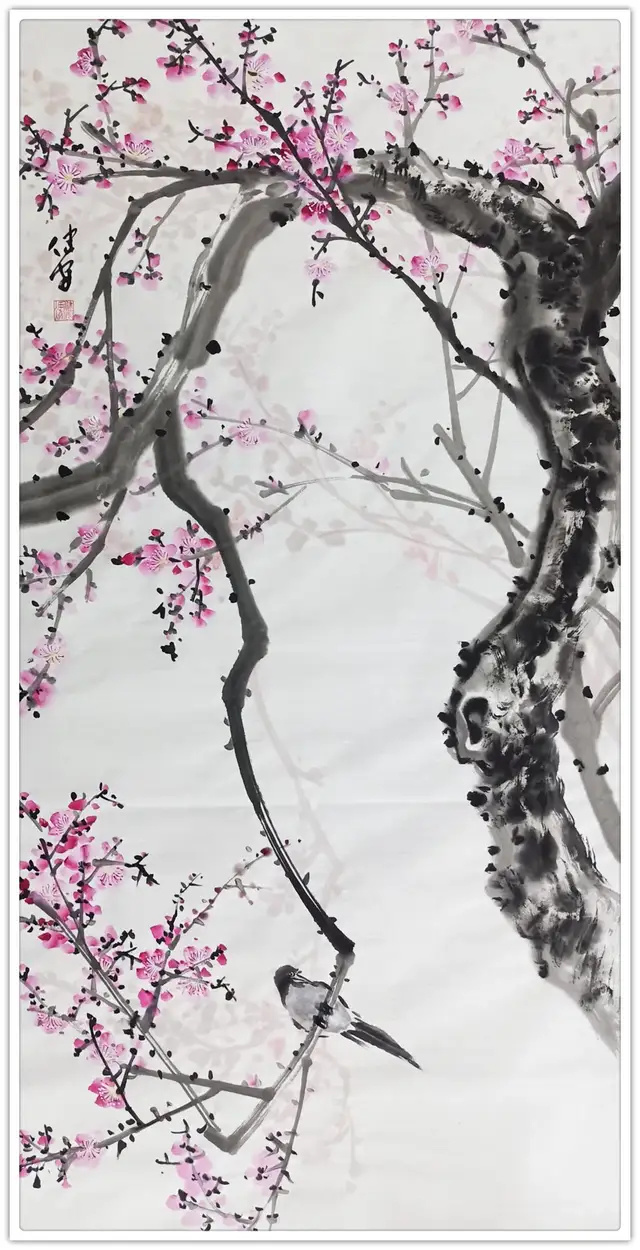 其花鸟画,细腻而不失大气。他继承了中国传统花鸟画的写意精神,注重笔墨情趣和意境营造,将花鸟的生机与活力展现得栩栩如生。同时,他巧妙地结合现代审美观念,在色彩运用和构图上大胆创新,使作品既有传统的典雅韵味,又符合当代人的审美需求,体现了对时代脉搏的精准把握。