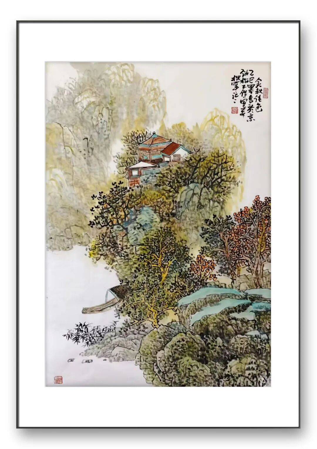 意境营造是邵建刚先生山水画的另一大亮点。他笔下的山水,绝非对自然景观的简单复刻,而是经过艺术提炼与情感灌注的精神家园。无论是层峦叠嶂的雄奇山水,还是小桥流水的田园风光,都充满了诗意与温情。在构图上,他善于运用“高远、平远、深远”的传统构图法则,同时融入现代审美视角,让画面疏密有致、虚实相生。