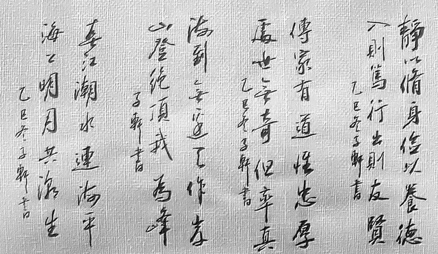 蓝宗宽:字子轩,江西省赣州人;江西省书法家协会会员,江西省人文书画院副院长,江西风景独好书画院副院长,中国当代书画名家协会常务理事,国家一级书法师。蓝宗宽先生出生成长在一个书法世家,自幼受到父亲和兄长的殷切教导和熏陶,师古纳今,潜心研习,临摹创作;每一幅匠心写作都彰显其宽广的胸怀与睿智。经过几十年的刻苦研习,形成了其独特的书法风格和审美意境,成为书法界颇具影响力和知名度的当代书法名家。蓝宗宽的基本功扎实,作品大气磅礴,变化丰富。其作品吸取了历代书法艺术精髓,笔锋洒脱苍劲,字体浑厚大度,布局疏落有致,整体气脉相连,连篇浓重而不失秀雅;笔墨韵律充满质感,运笔秀巧,行云流水,收放有度,极具生命力和活力。书法是中华民族的国粹文化,博大精深;它既能满足人民的审美需求,更是抒发情怀,彰显语言艺术的独特形式。