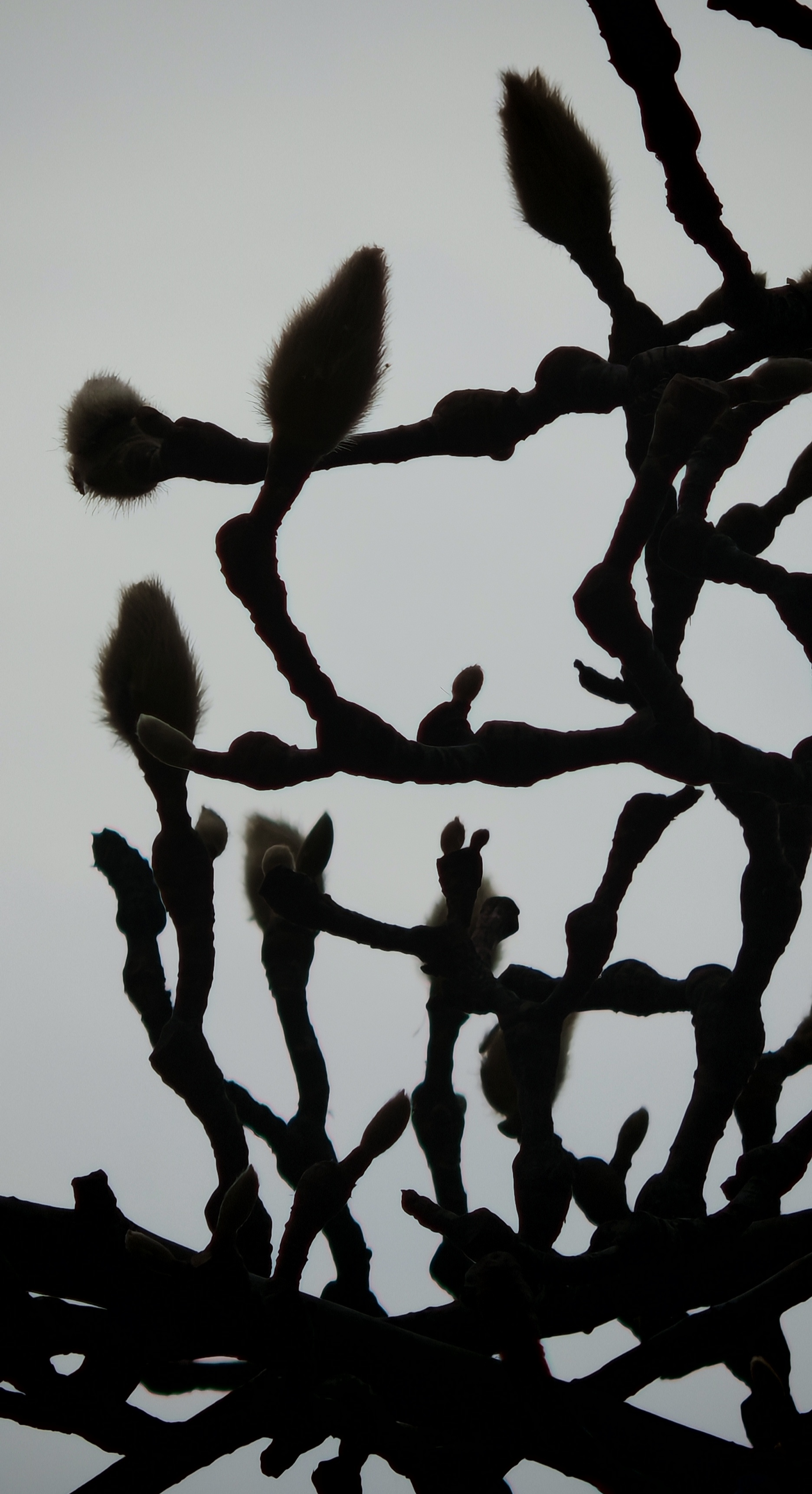 给玉兰花苞来个剪影,它们要坚挺到明年春天