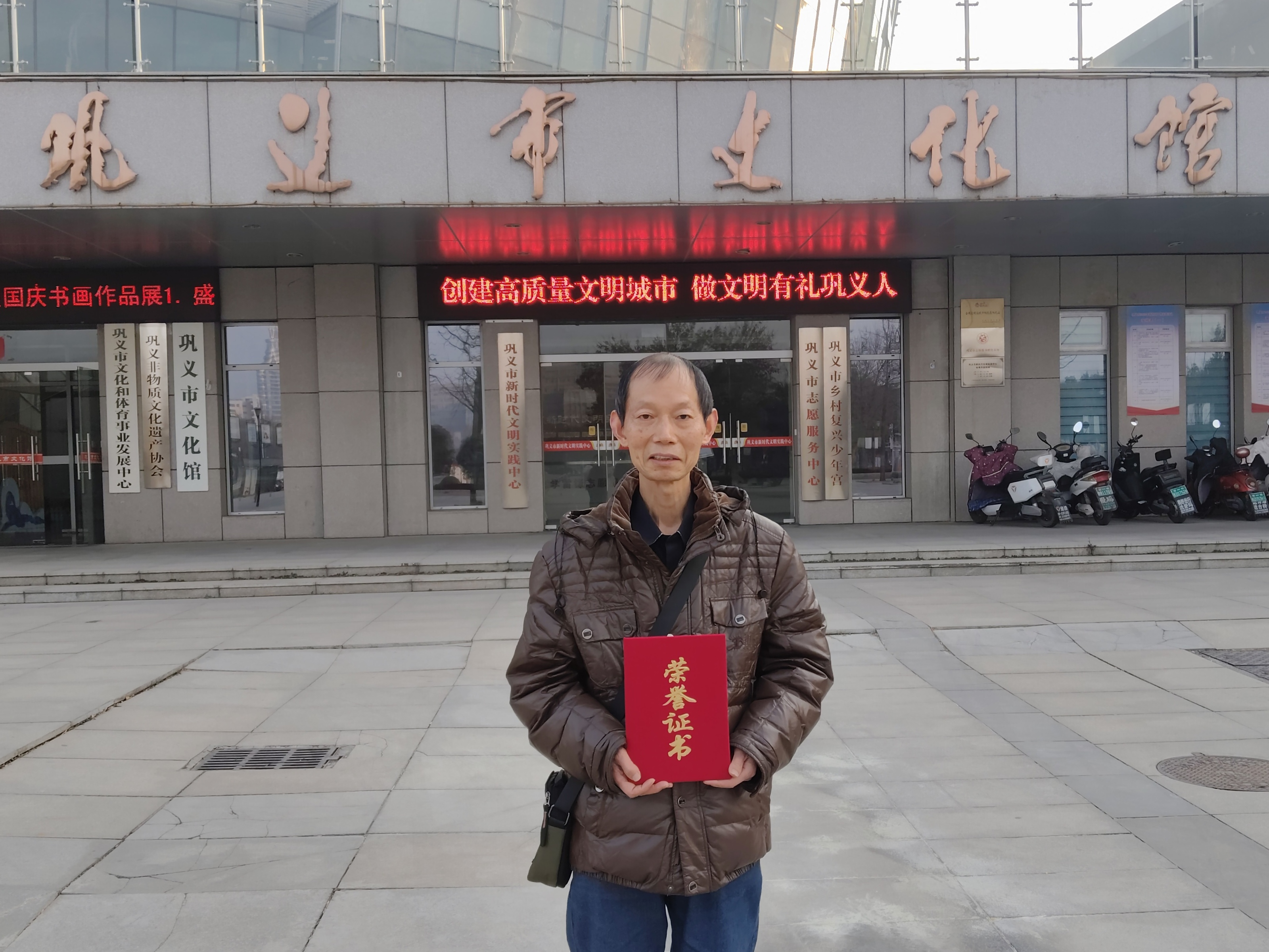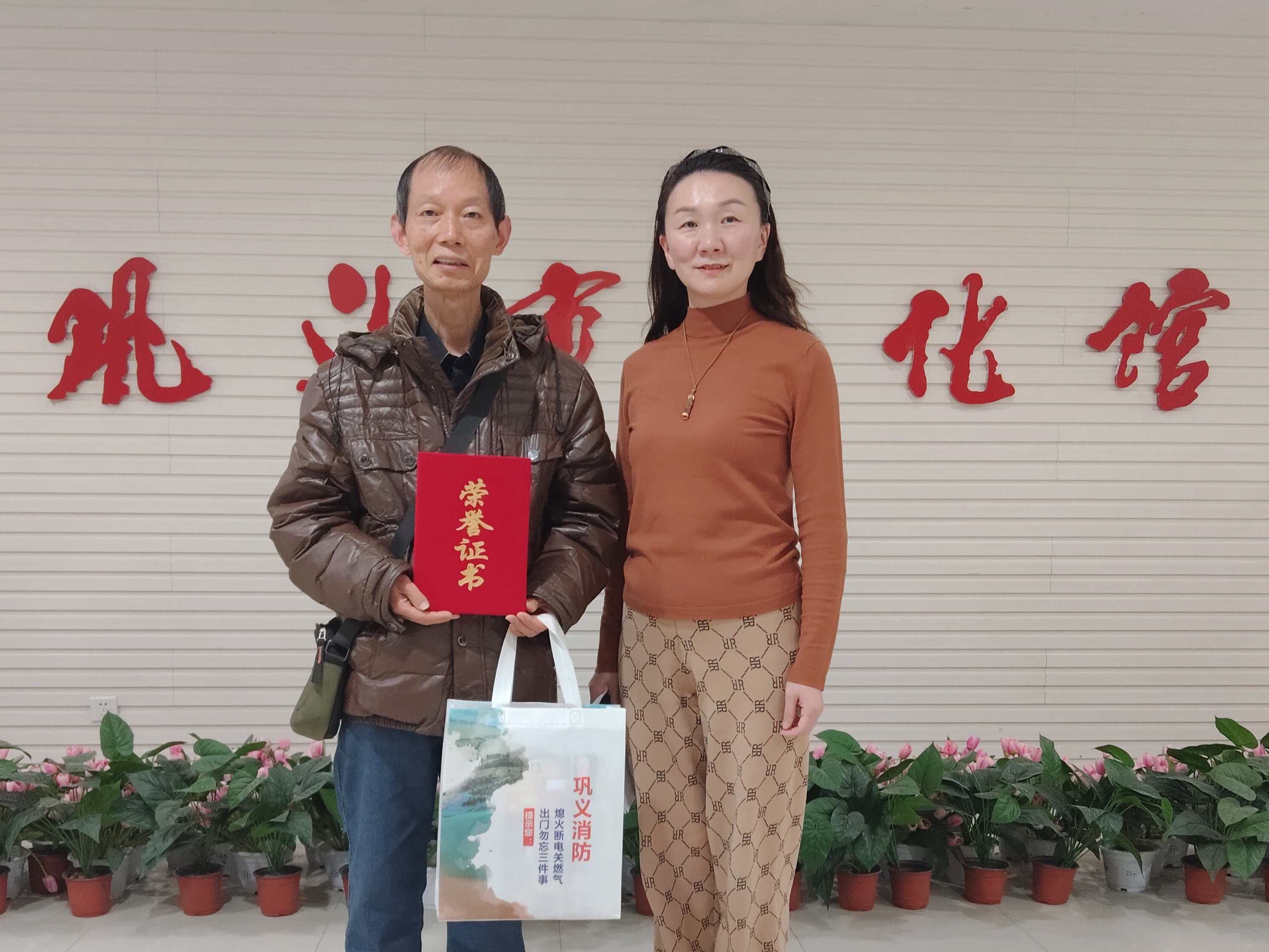 昨天下午通知我到巩义市文化馆,又领回一个获奖证书,还有奖品,并与美女馆长刘淑丽合影留念,再次向各位老师文友报喜。