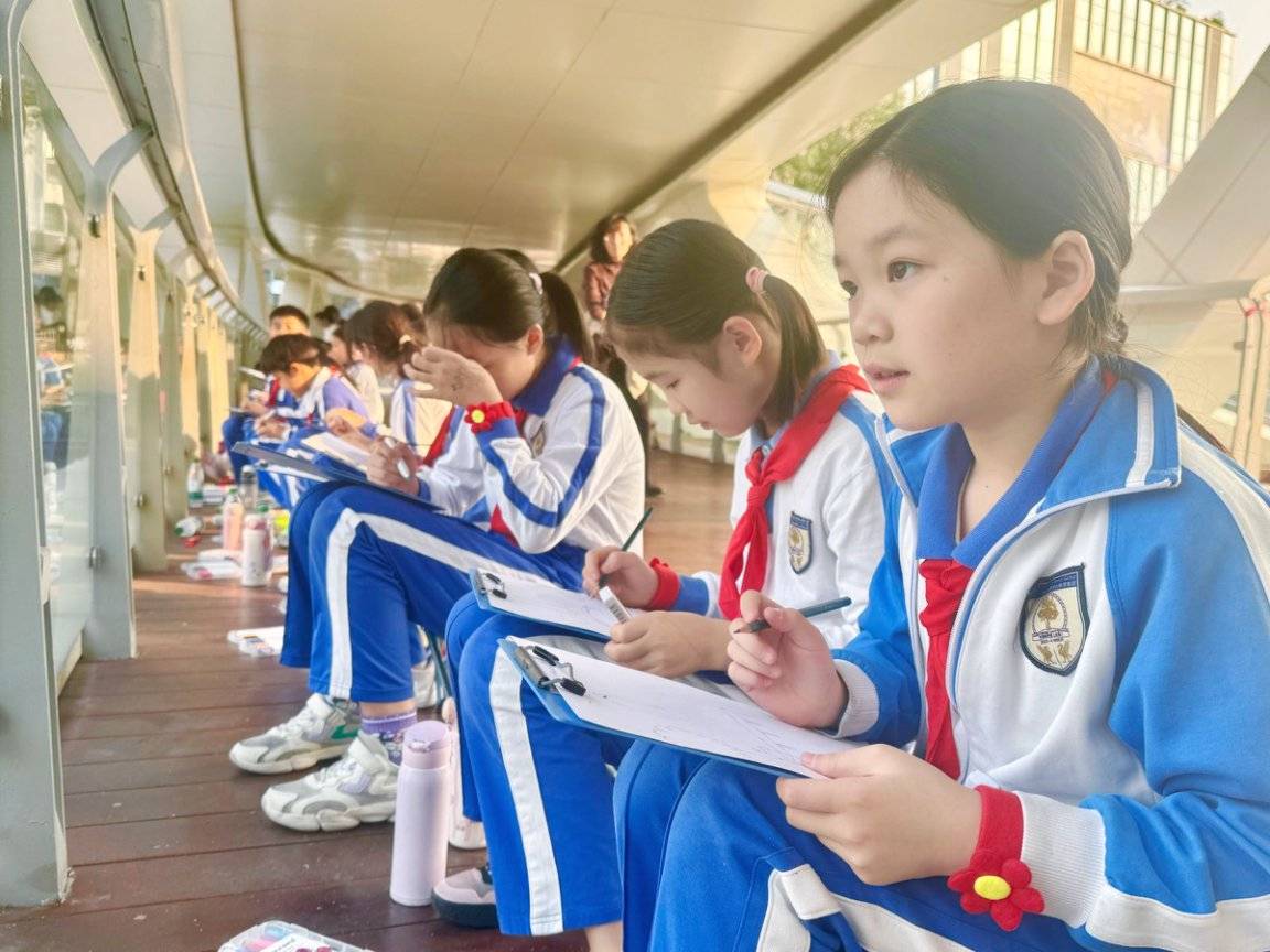 “极致审美从娃娃抓起”不是口号,而是行动。福保街道联动周艺文工作室,与益强小学、全海小学等结对共建,把美育课堂搬到河边,在专业画家带领下写生自然。