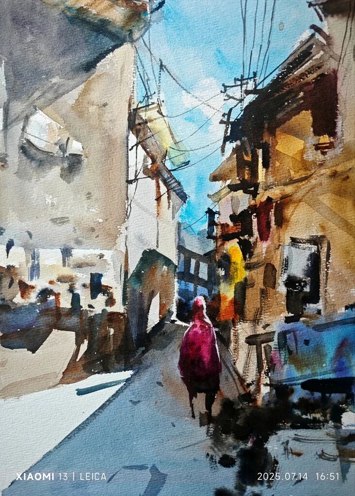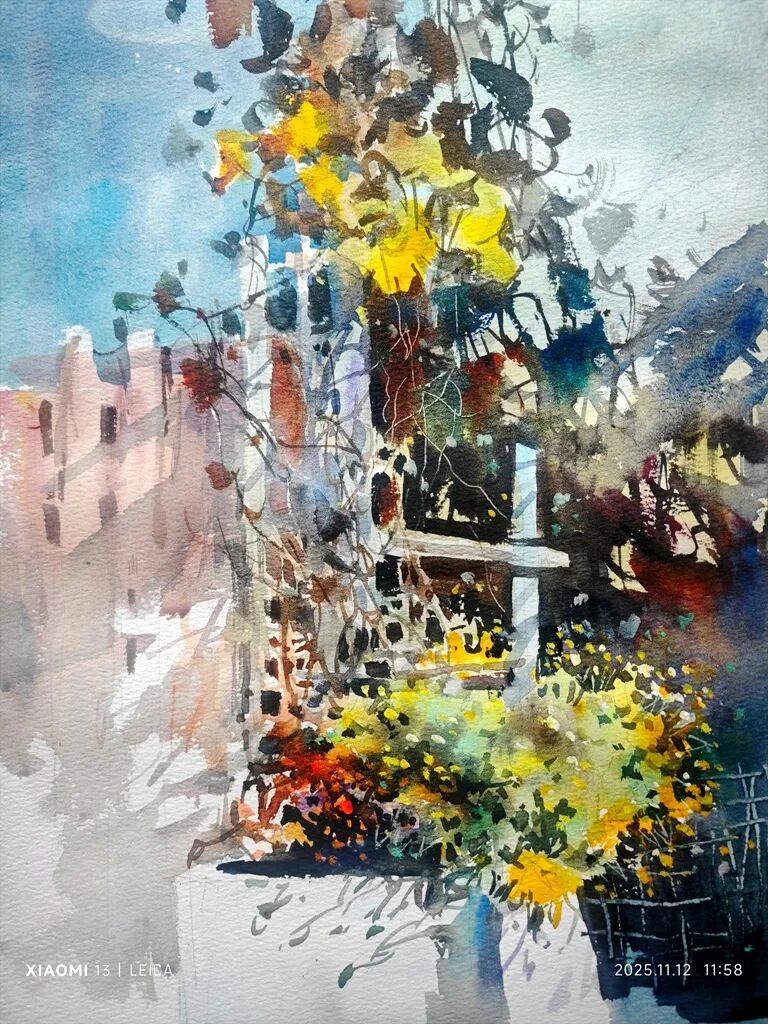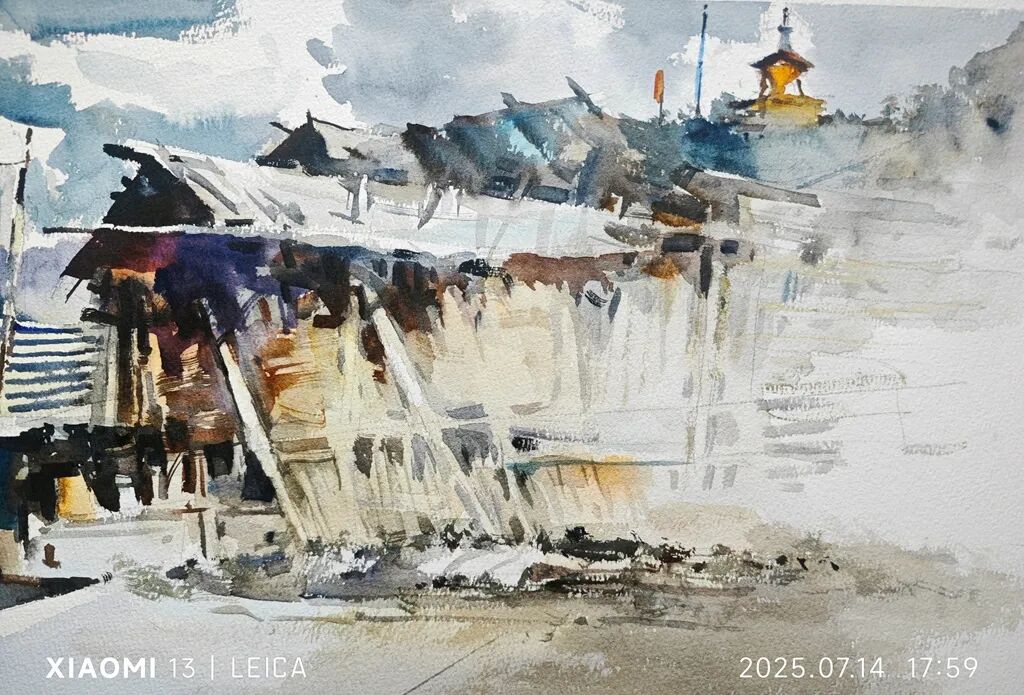 2023年,水彩画作品《家园》入选2023年第七届意大利乌尔比诺国际水彩展。