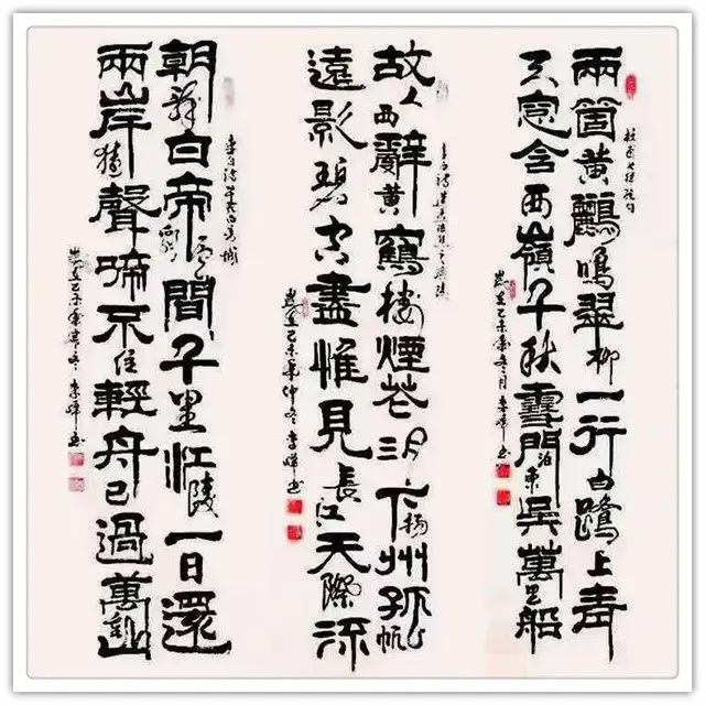李峰的书法世界建立在深厚的传统地基之上。他对汉隶的研习绝非表面化的形似追求,而是深入骨髓的气质把握。观其隶书作品,横平竖直间蕴含着《礼器碑》的峻拔、《张迁碑》的朴茂,转折处可见《石门颂》的舒展,这种对经典的消化吸收已臻化境。尤为难得的是,李峰对"诸家真、草、隶、篆"的广泛涉猎并非杂而不精的炫技,而是构建起了一个相互滋养的笔法生态系统。他的行书作品中,我们能清晰辨识出隶书笔意的沉淀——那种舍弃浮华、回归本真的线条质感,恰恰来自隶书训练的深厚根基。这种跨书体的笔法互鉴,使李峰的作品避免了单一体裁容易陷入的技术窠臼,形成了"传统而新鲜"的独特面貌。