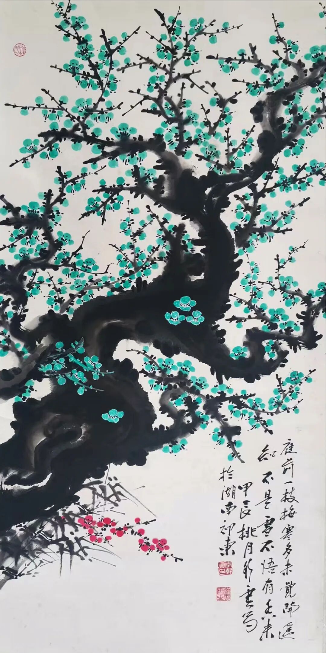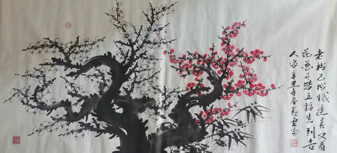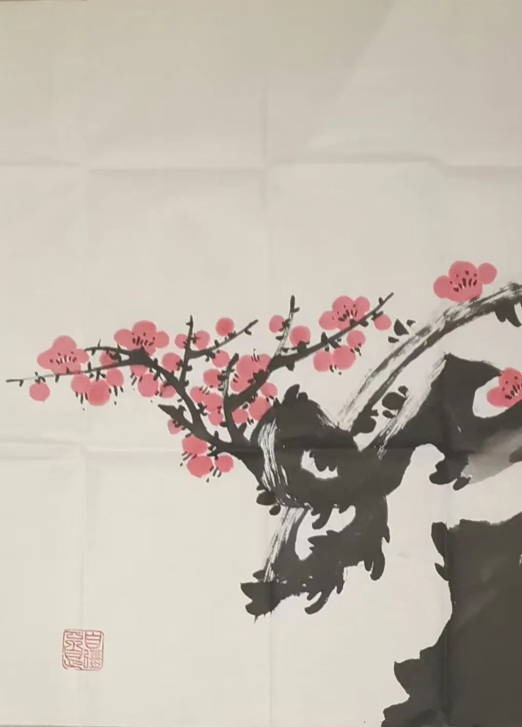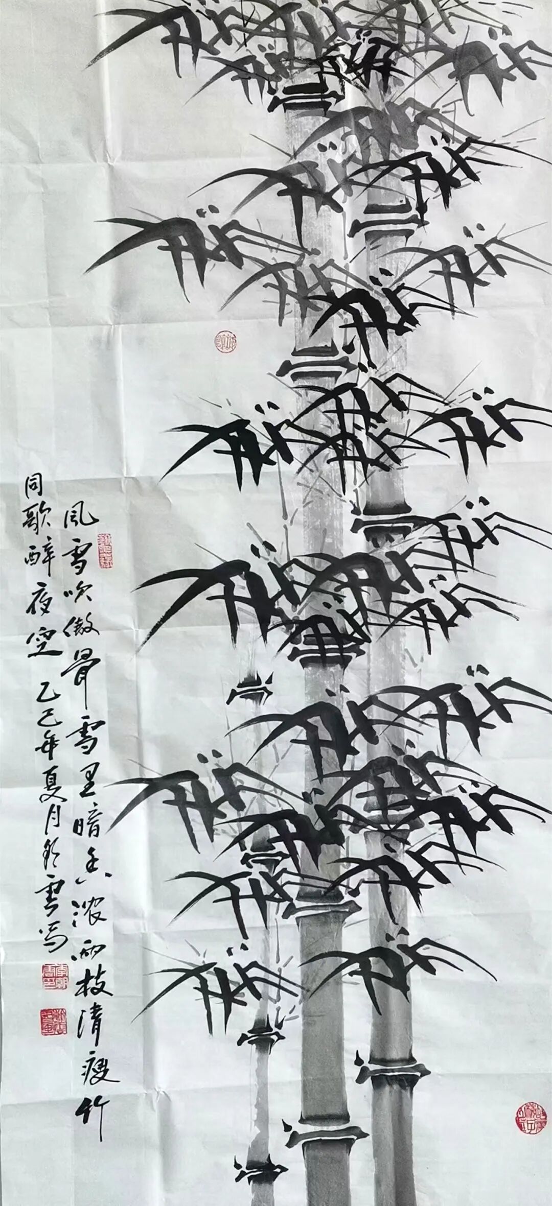 在绘画方面,李朝云先生尤擅梅、竹、花鸟等题材。他笔下的梅花枝干苍劲、转折有力,花瓣疏密得当,既有“铁骨冰心”的高洁品格,也有生机勃发的温润气息;竹子则以挺拔的姿态、清劲的笔线表现其坚韧与气节,竹叶的向背、浓淡、疏密处理富于节奏感,使画面在简约中见丰富,在静穆中含动势。作品整体呈现出清新雅致、刚柔并济的审美取向,体现了画家对自然物象的细致观察与对笔墨语言的熟练驾驭。