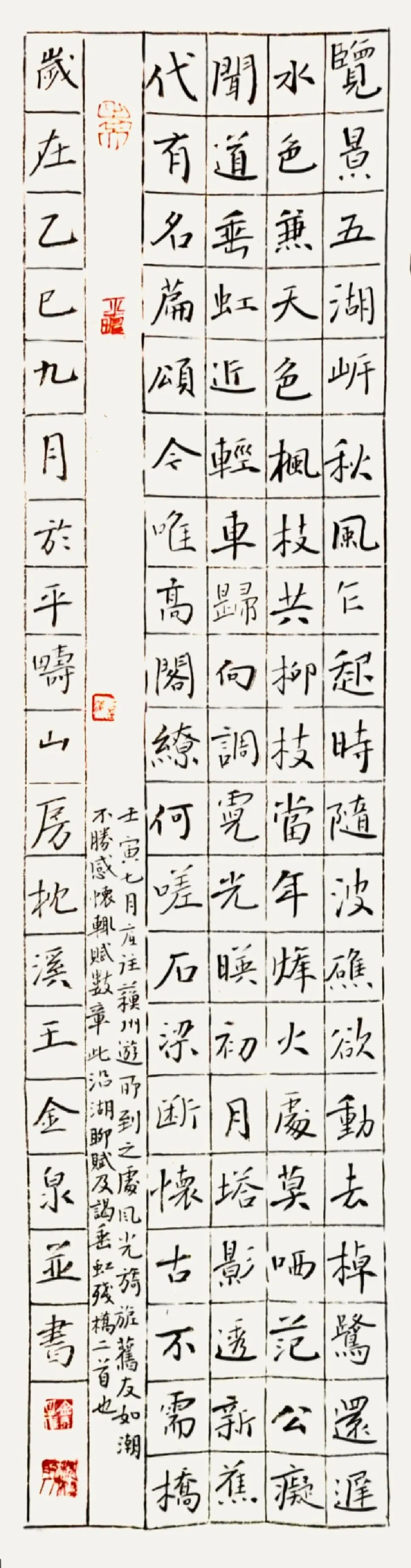 王金泉 又名胡杰,胡平畴,号枕溪散人,平畴山房,枕溪山房,茨滨小筑,古月轩。一九六二年生于安徽太和。现为中书协会员,中书协行书委员会委员,安徽省政协书画院副院长。
