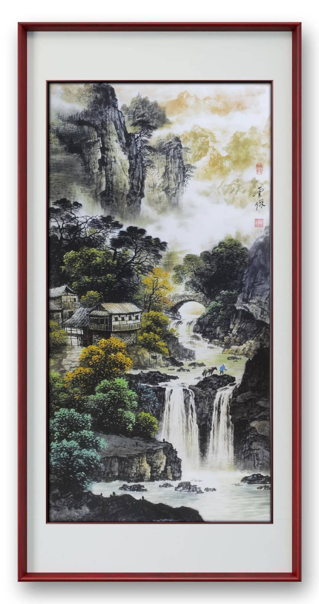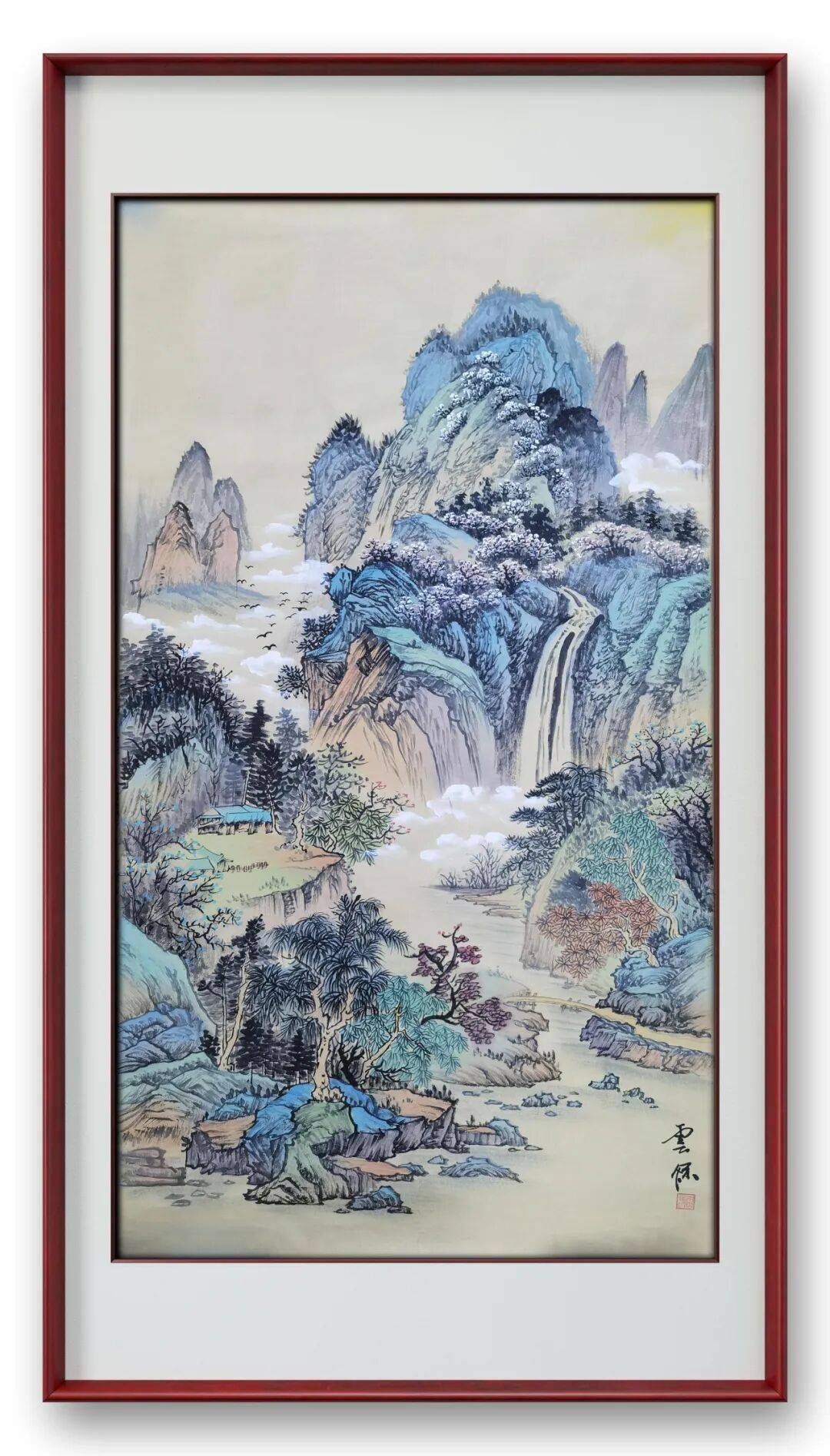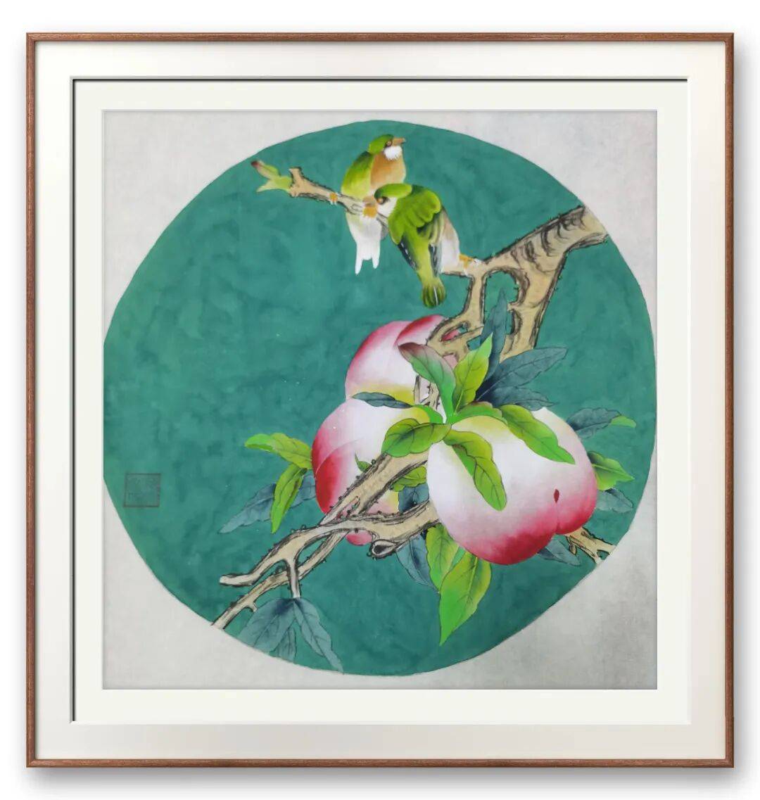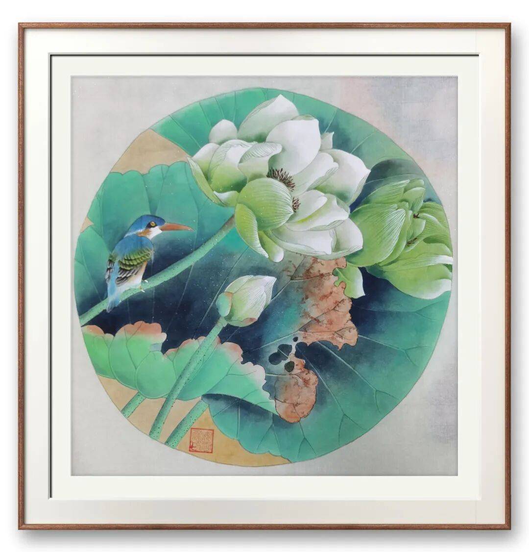其兼擅工笔花鸟、山水,笔下花鸟形神兼备,翎羽宛然若动,设色雅致清丽;山水皴染有度,丘壑藏幽,于尺幅间铺展山河气象,兼具传统笔墨之韵与当代审美之趣。