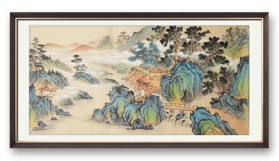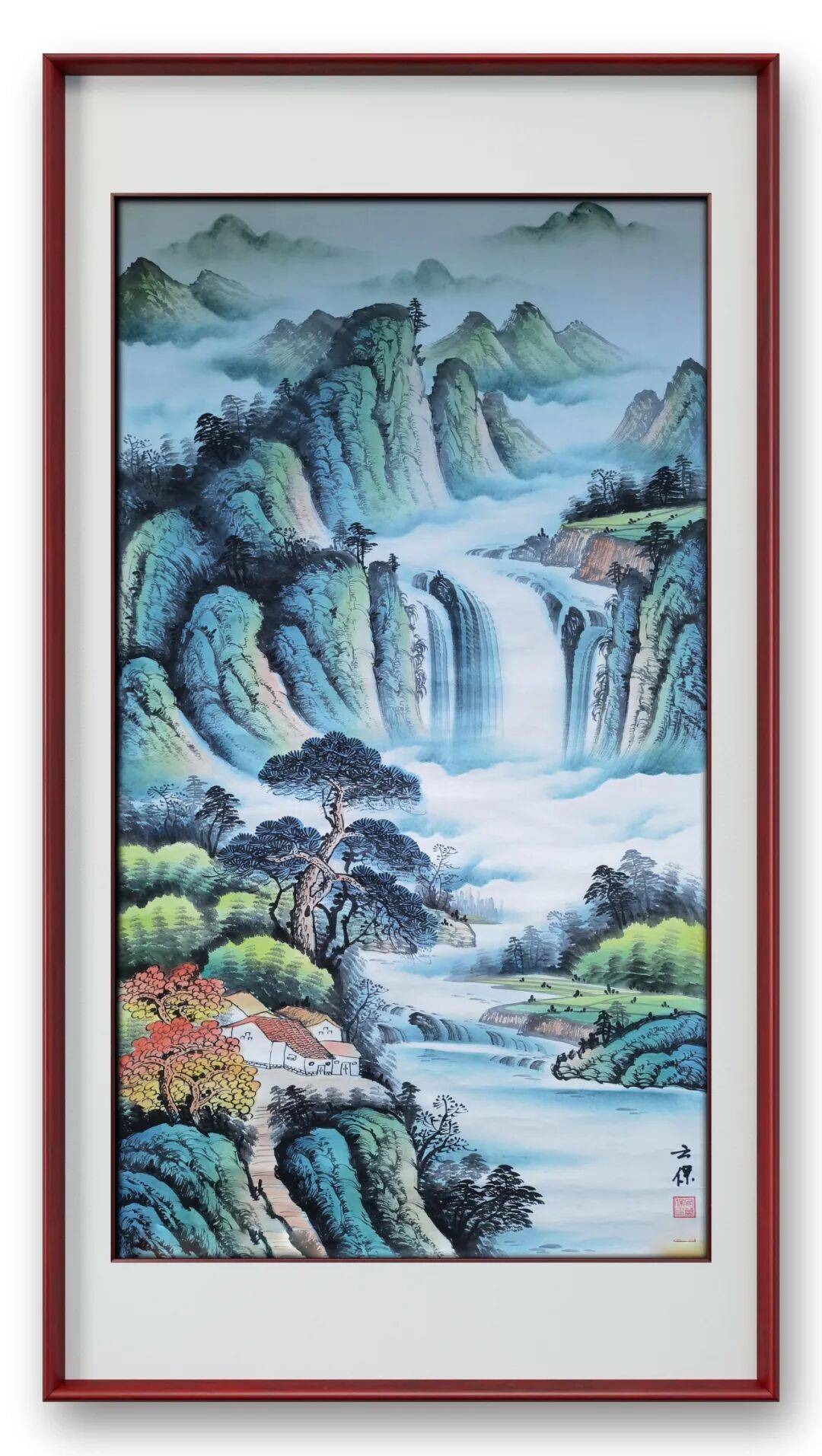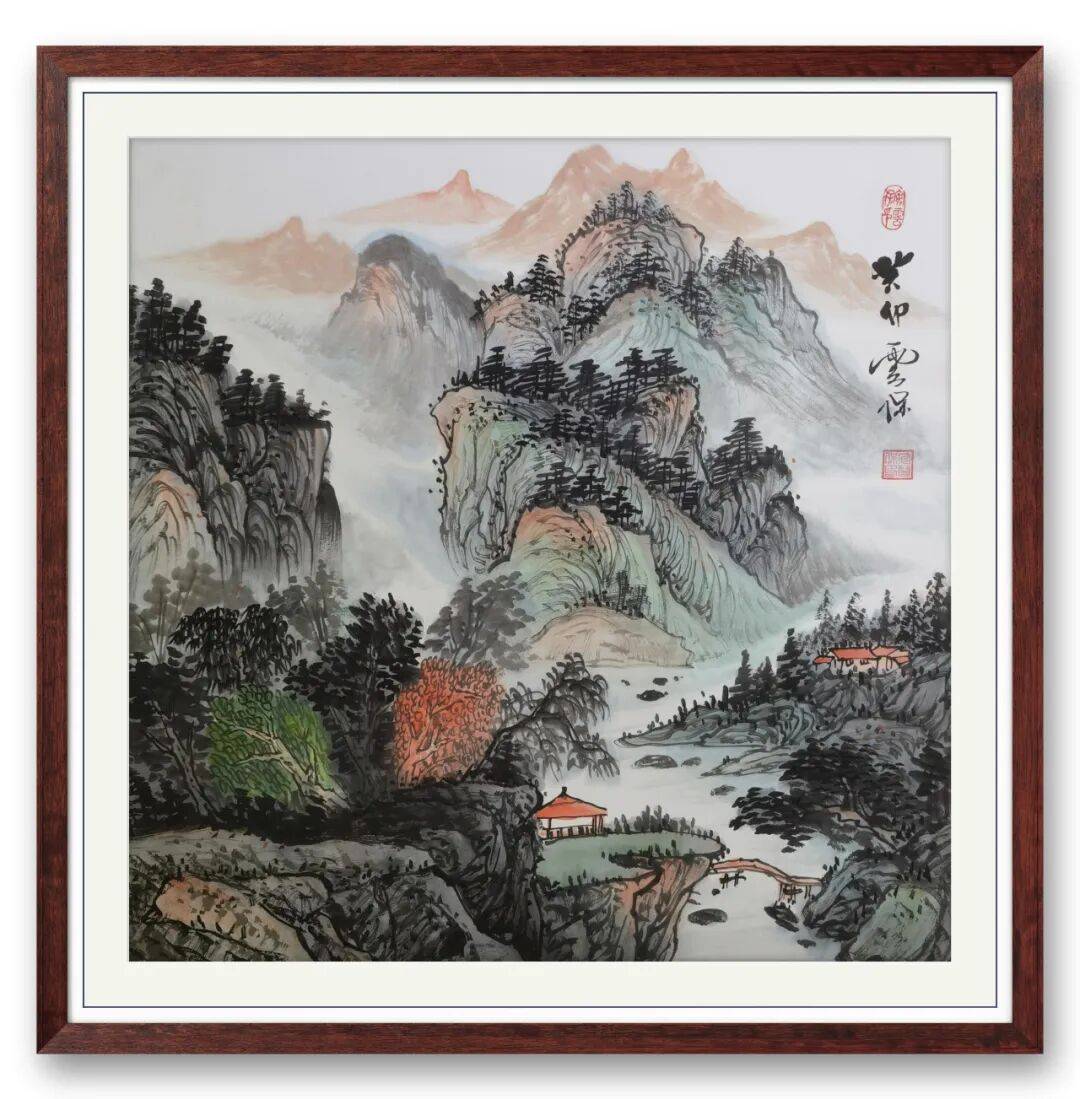 安先生的山水画,不耽于奇峰怪石的刻意造势,却在咫尺尺幅间,藏尽丘壑之幽、云烟之态。其用笔深谙传统皴法之妙,或披麻皴写山之肌理,或斧劈皴显石之嶙峋,墨色的浓淡干湿间,似有山风穿林、溪水潺潺的意趣流淌。他笔下的山水,没有剑拔弩张的匠气,却带着晋地山水的沉稳厚朴,远山含黛,近树葱茏,留白处的云烟漫漶,恰是中国画“虚实相生”的精髓所在,观之如临溪山,心生澄明。