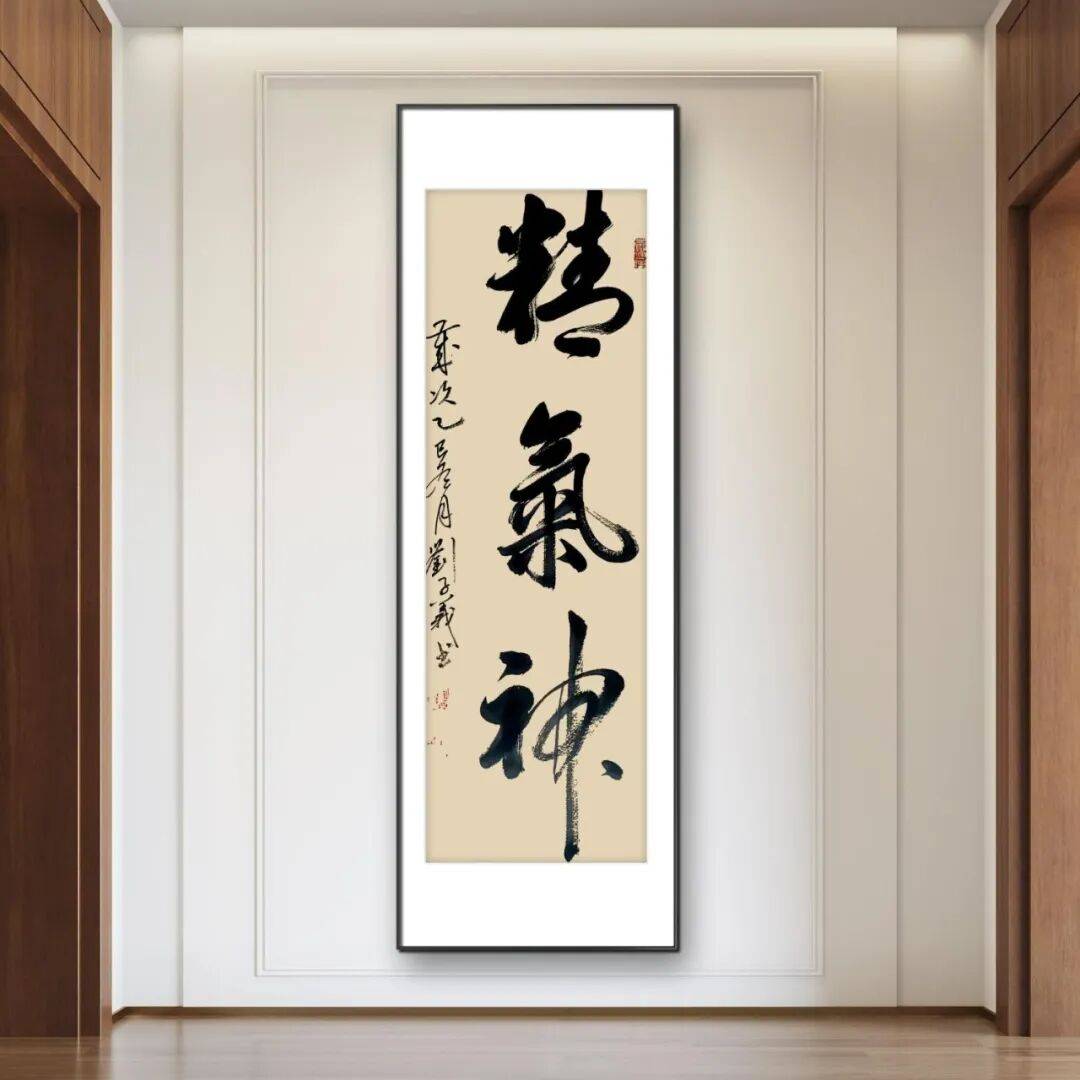 刘子义先生的行楷榜书作品,首先给人的印象是气势磅礴、雄浑大气。他的榜书字形硕大,笔画厚重饱满,线条刚劲有力,充满了力量感与视觉冲击力。在创作过程中,他充分运用颜体的雄浑之气,将中锋行笔的技法发挥到极致,使笔下的线条兼具厚度与力度,仿佛蕴含着无尽的能量。同时,他又融入了欧体的严谨规范,注重结字的疏密与欹正,使硕大的字形既端庄规范,又不失灵动之气。