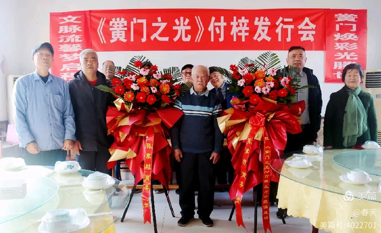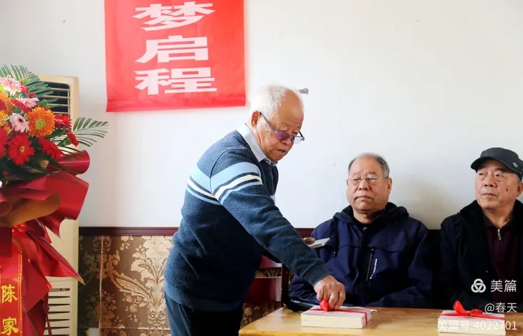 八九点钟后,本书作者、淄博九中老校友,还有为本书出版做了好多辅助工作的陈家庄村委负责同志陆续到场。只见迎面墙上挂上了红红的横幅,主席台两旁摆上了陈家庄村委赠送的大花篮,一派热闹祥和气象。