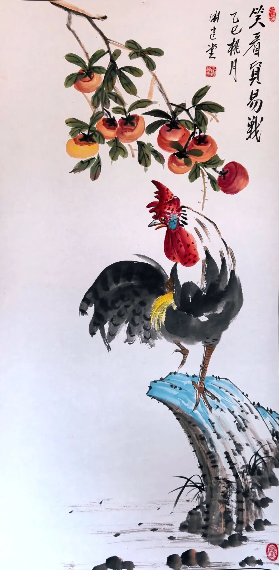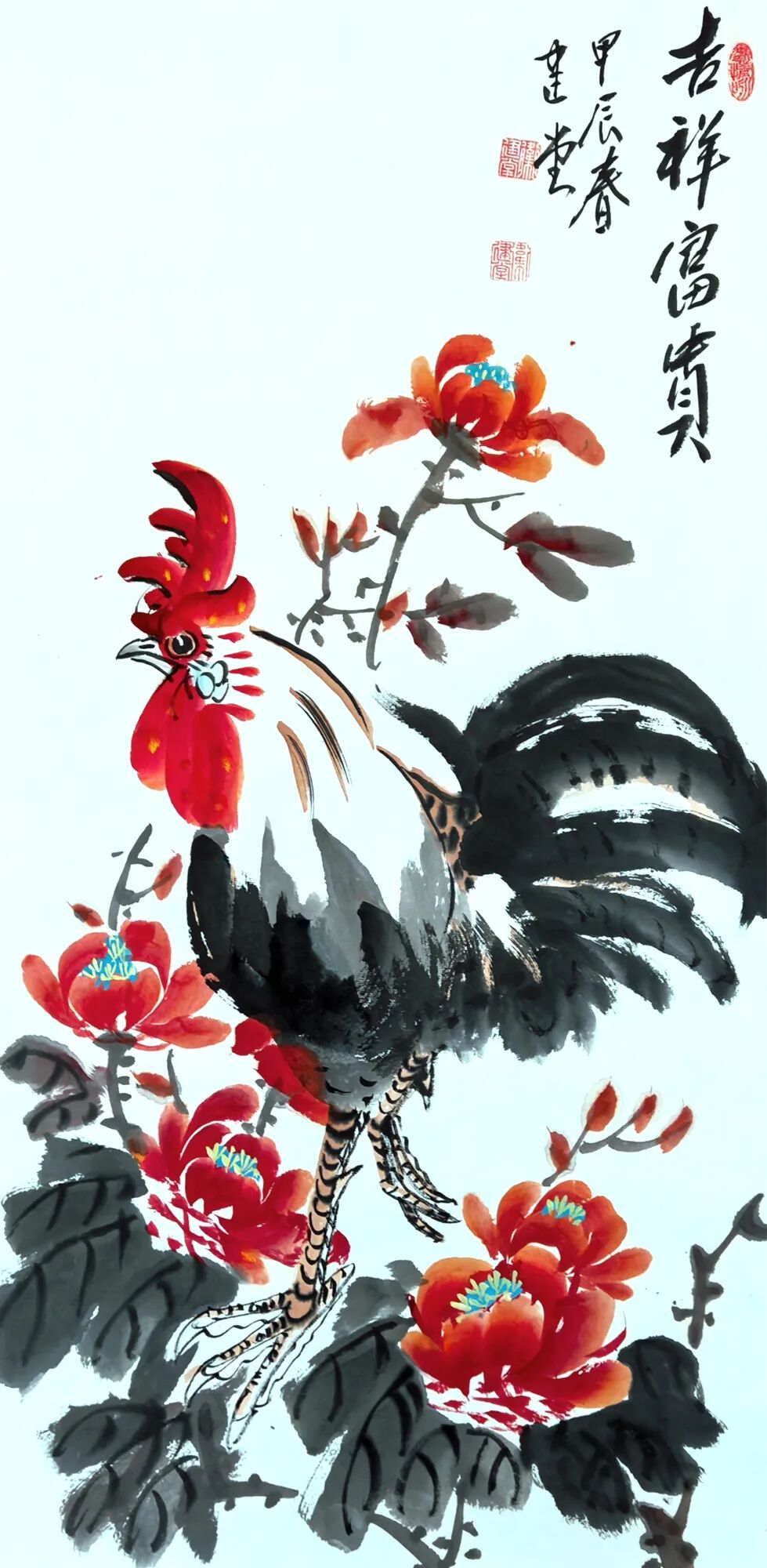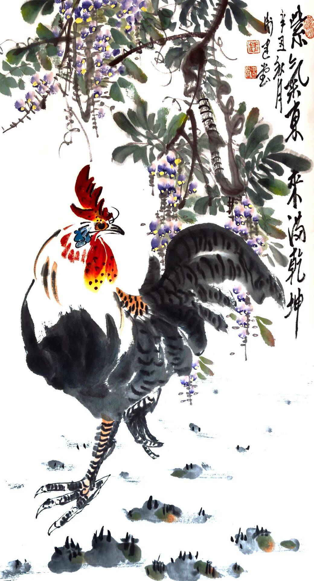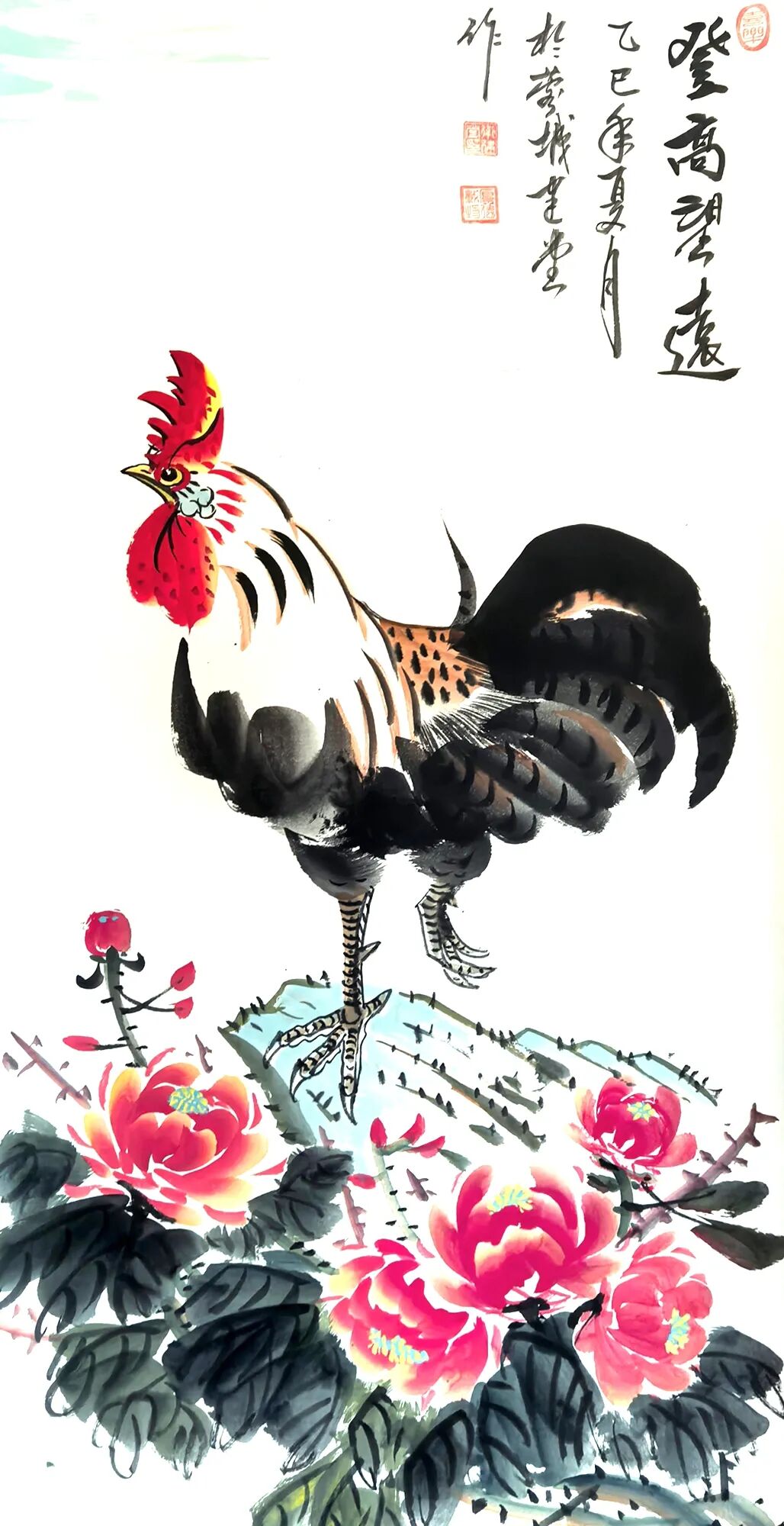 纵观卫建堂先生是一位笔墨诗意表达人生境界的后文人艺术大家。在写意花鸟作品时,他作画时的激情澎拜,笔随情动,情由心出,立笔挥洒,势若旋风,寥寥数笔,均成妙作。几条墨线条的穿插与交织,使空间在分割中产生了大开大合的丰富性。使有限转为无限,无序转为有序,使千姿百态的虫虾小鸟在造型上 的奇特、寒梅绽放时的积极向上的高尚品质、在哪萍水相连的荷塘情景、在哪雄鸡登高望远的画面。。。。都充满着诗情画意和生动灵感,呈现出作品极其丰富的内涵,我们不难看出他笔法的简劲明快,迅捷老辣,形神兼备,设色清淡古雅又不乏点睛之处,干涩浓淡的笔法把内心的语言表现的淋漓尽致。他运用独特的意向造型,使画面充满灵气活力,把绘画的诸要素处理的炉火纯青,让人感觉到他作画时洋溢的激情以及透露出那股大家、大雅、大气之势。呈现出一种气韵生动的美感,他避开千人一面和墨守成规,勇敢步入属于自己独创的艺术天地,形成自己的独特风格。