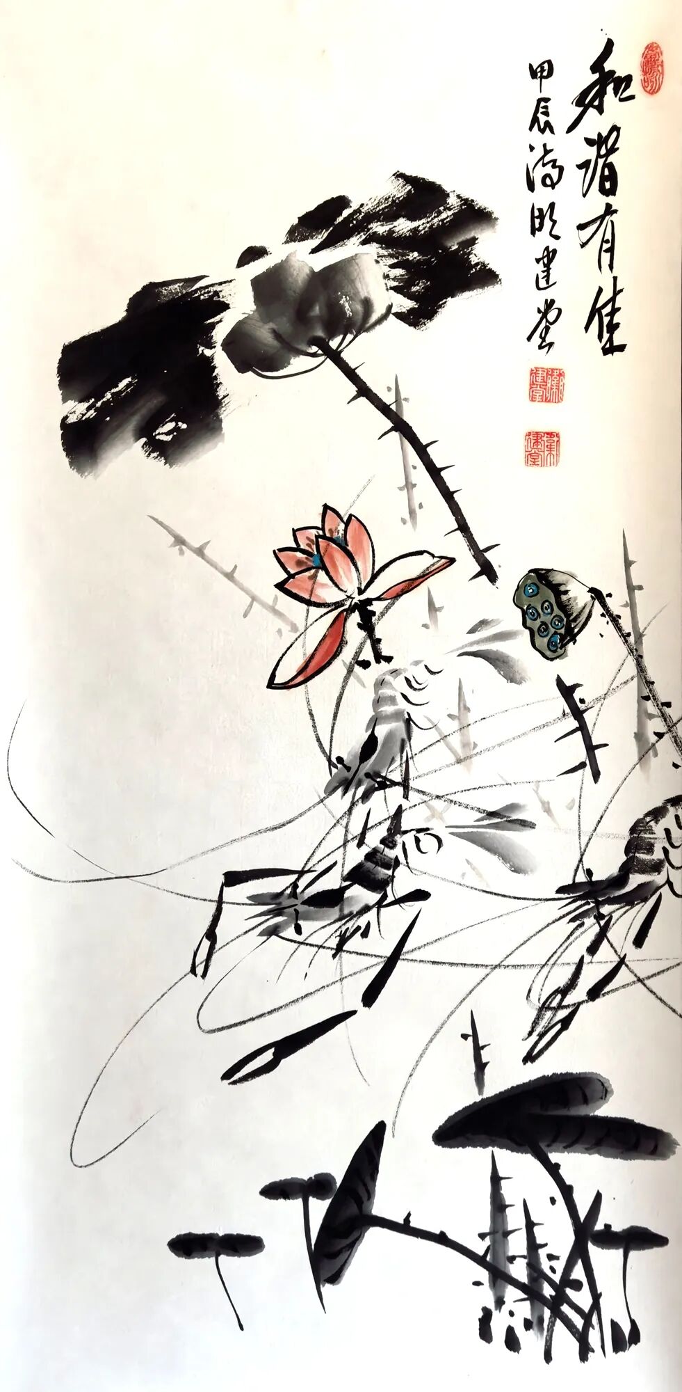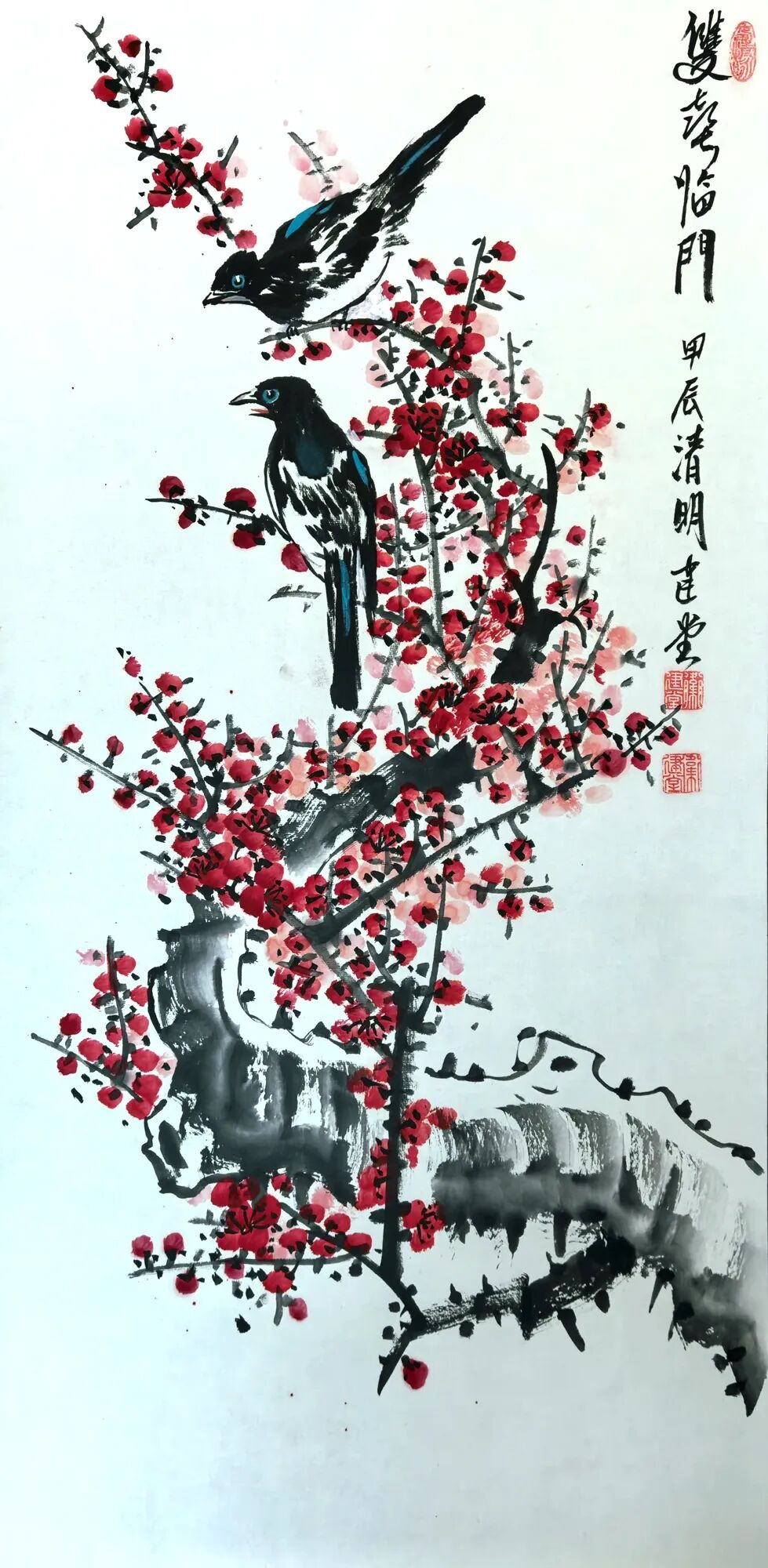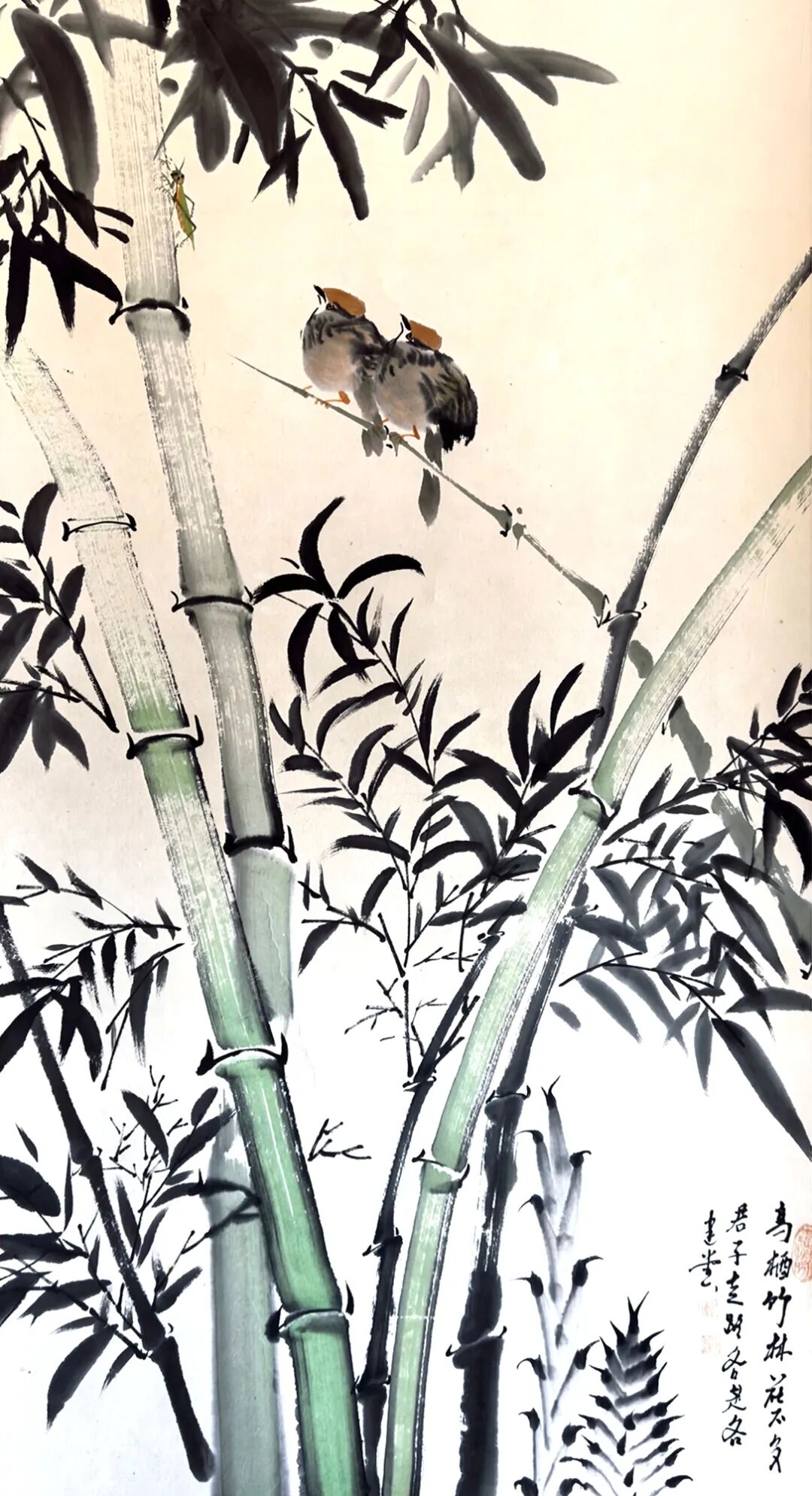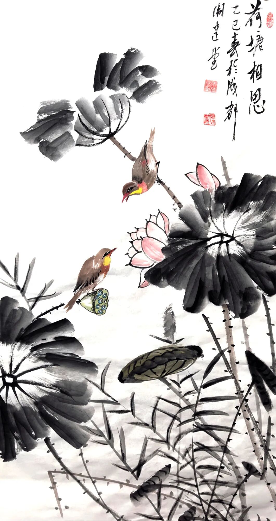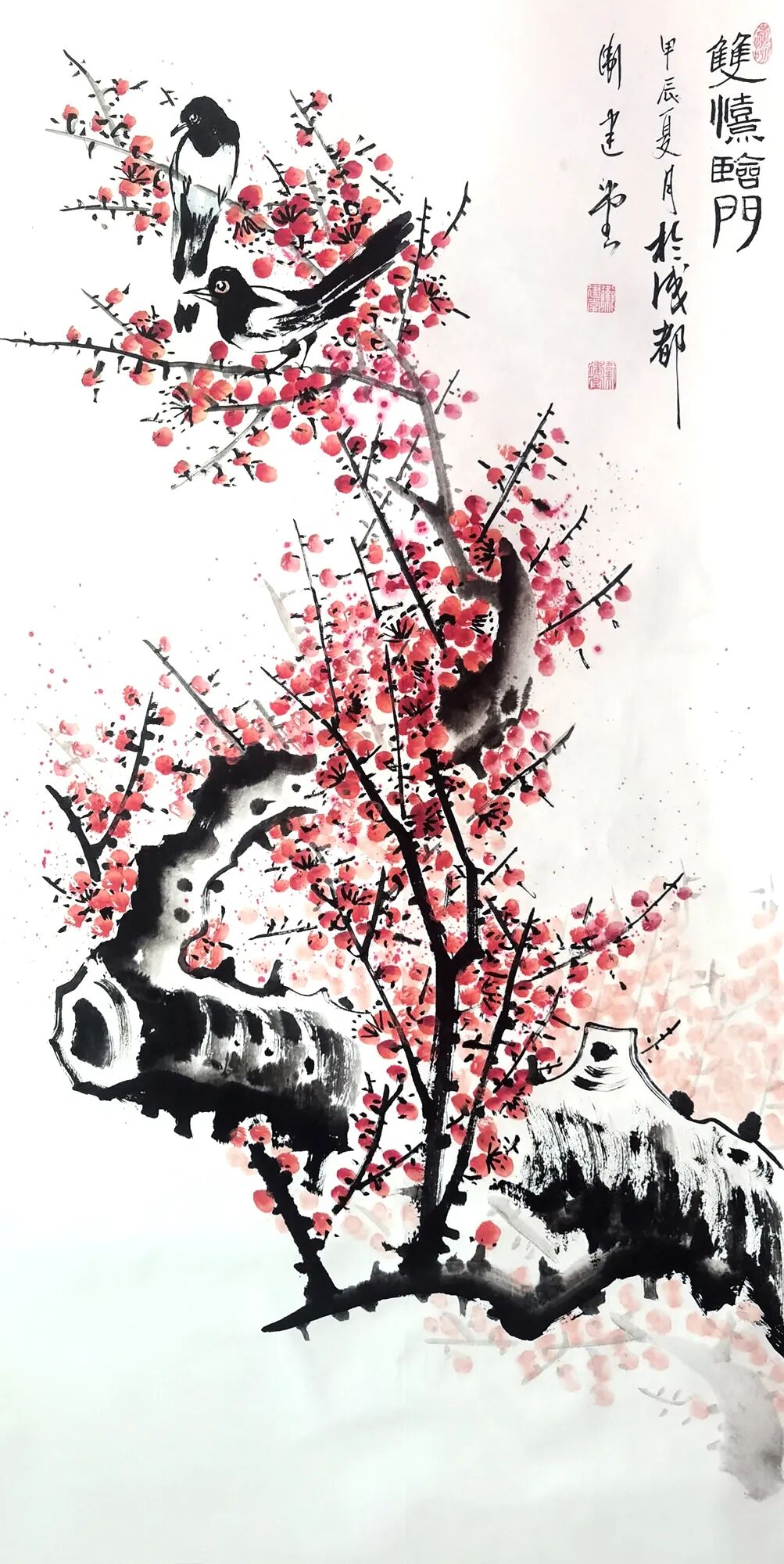 纵观卫建堂先生是一位笔墨诗意表达人生境界的后文人艺术大家。在写意花鸟作品时,他作画时的激情澎拜,笔随情动,情由心出,立笔挥洒,势若旋风,寥寥数笔,均成妙作。几条墨线条的穿插与交织,使空间在分割中产生了大开大合的丰富性。使有限转为无限,无序转为有序,使千姿百态的虫虾小鸟在造型上 的奇特、寒梅绽放时的积极向上的高尚品质、在哪萍水相连的荷塘情景、在哪雄鸡登高望远的画面。。。。都充满着诗情画意和生动灵感,呈现出作品极其丰富的内涵,我们不难看出他笔法的简劲明快,迅捷老辣,形神兼备,设色清淡古雅又不乏点睛之处,干涩浓淡的笔法把内心的语言表现的淋漓尽致。他运用独特的意向造型,使画面充满灵气活力,把绘画的诸要素处理的炉火纯青,让人感觉到他作画时洋溢的激情以及透露出那股大家、大雅、大气之势。呈现出一种气韵生动的美感,他避开千人一面和墨守成规,勇敢步入属于自己独创的艺术天地,形成自己的独特风格。