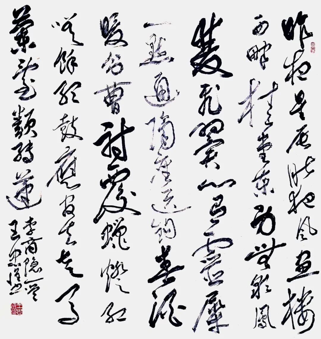 王忠怀先生的书法像一杯醇厚的陈酿,既有千年碑帖的厚重,又氤氲着当代审美的芬芳,每一笔每一划都蕴含着深邃的情感和独特的魅力。其字体结构严谨而不失灵动,笔画的粗细、长短、轻重,都被他把握得恰到好处,展现出高超的技艺和深厚的功力。