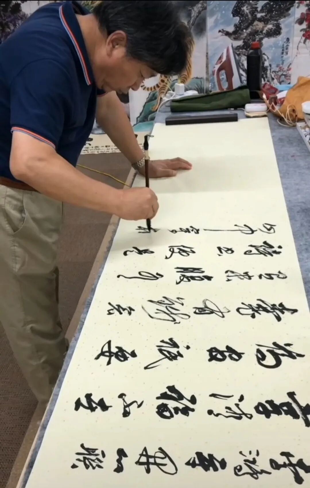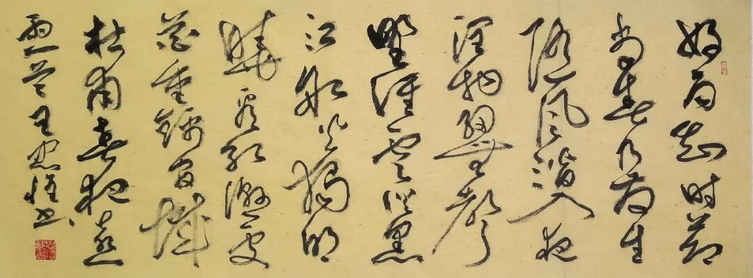 他的书法作品整体风格大气磅礴,却又不失细腻入微。在豪放中蕴含着婉约,在洒脱中透露着矜持,给人以无尽的遐想和深刻的感悟。