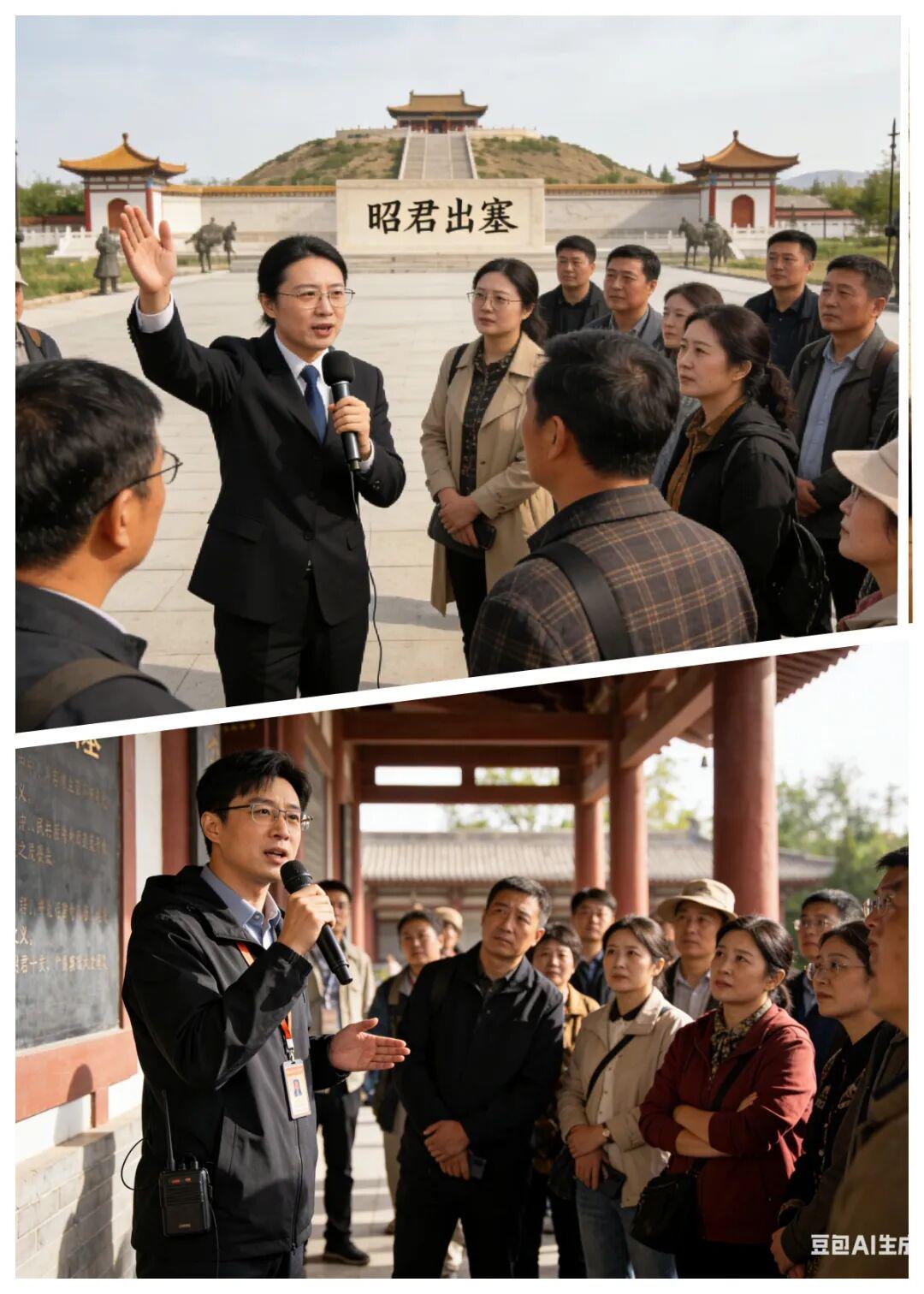 导游喇叭声此起彼伏:“这里是民族融合的象征,王昭君以伟大的自我牺牲换来了边境半个世纪的和平……”