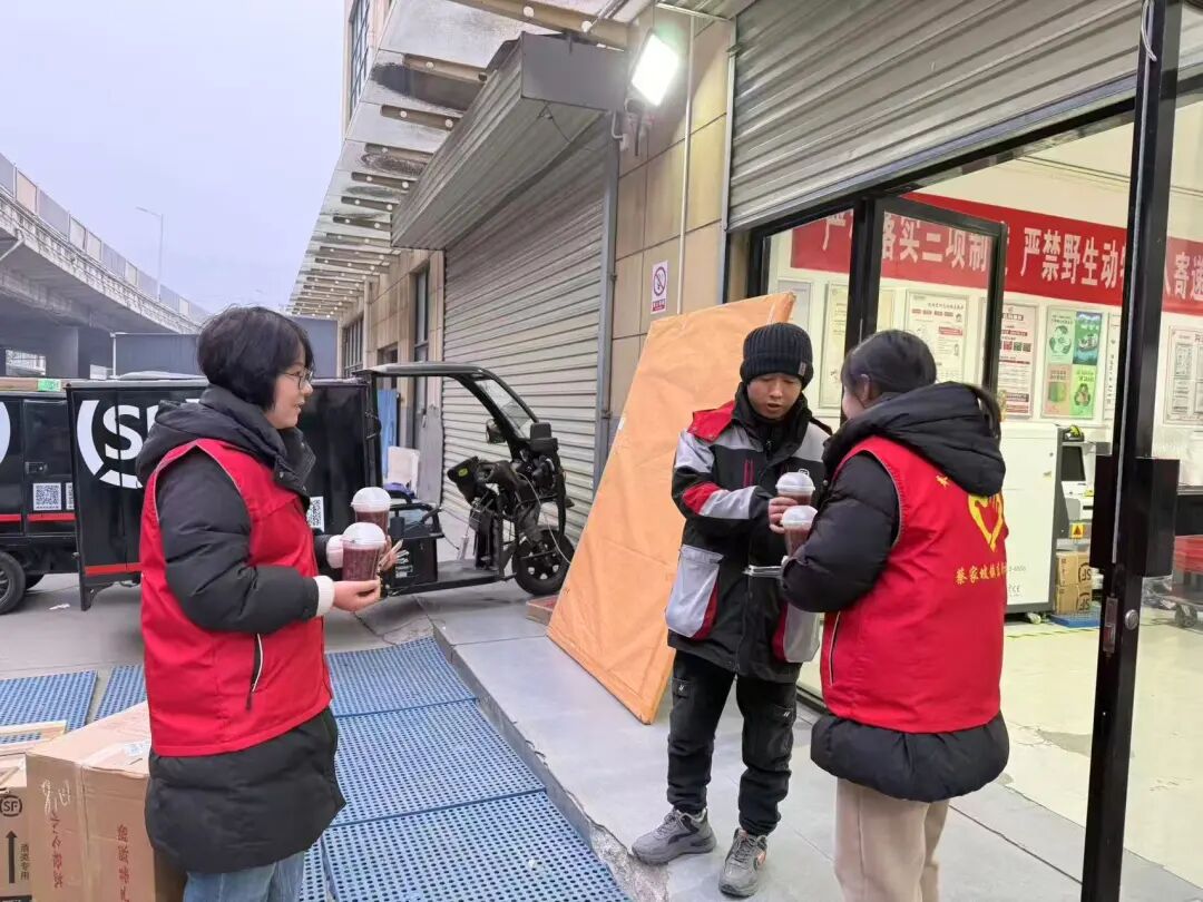 志愿者提前筹备,精心挑选糯米、红豆、花生、红枣等多种食材,反复清洗、慢火熬煮。数小时后,一锅色泽鲜亮、香气馥郁的腊八粥新鲜出炉,氤氲的热气中满是团圆与温暖的气息。一碗碗分装好的腊八粥被志愿者送到快递员、外卖骑手、环卫工人等户外劳动者手中,暖意瞬间驱散了寒风的凛冽,让坚守岗位的户外劳动者感受到了社区的关怀与尊重。