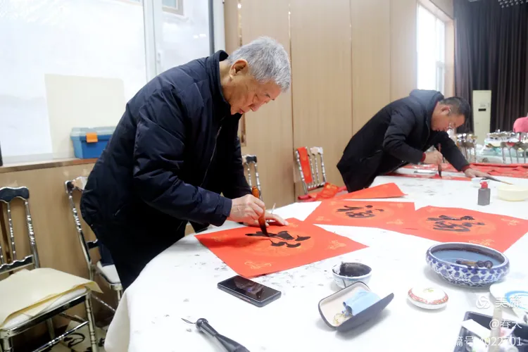 淄博聊斋文化艺术学会的领导班子莅临现场,书画艺术家们共襄盛举——大红宣纸铺展如霞,狼毫饱蘸深情,笔走龙蛇间,遒劲的“福”字凝住岁月温润,雅致的春联写尽家国期许,一幅幅书画作品墨香氤氲,既承续着聊斋文化崇德向善的精神内核,又传递着马年新春的吉祥祝愿 。笔墨传情处,是传统文化的脉脉相承;笑言晏晏间,是银发丹心的赤诚守望。