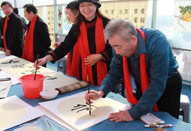 墨香融着韭香,在寒冬的蔬菜大棚间弥漫,一张张大红福字映照着农民灿烂的笑容。2月7日上午,临近春节,山东省安丘市石埠子镇南园果蔬专业合作社蔬菜大棚旁搭建的艺术创作区人头攒动。潍坊军旅书画院安丘分院组织十多位书画家走进乡村,开展“迎新春·送温暖”主题活动。书画家们铺展红纸、饱蘸浓墨,笔走龙蛇间,一幅幅寓意吉祥的春联与福字跃然纸上。经典春联佳句搭配灵动书法,既有传统年味,又彰显书画艺术魅力,吸引众多居民和合作社社员及附近农场场主驻足观赏、有序选取。