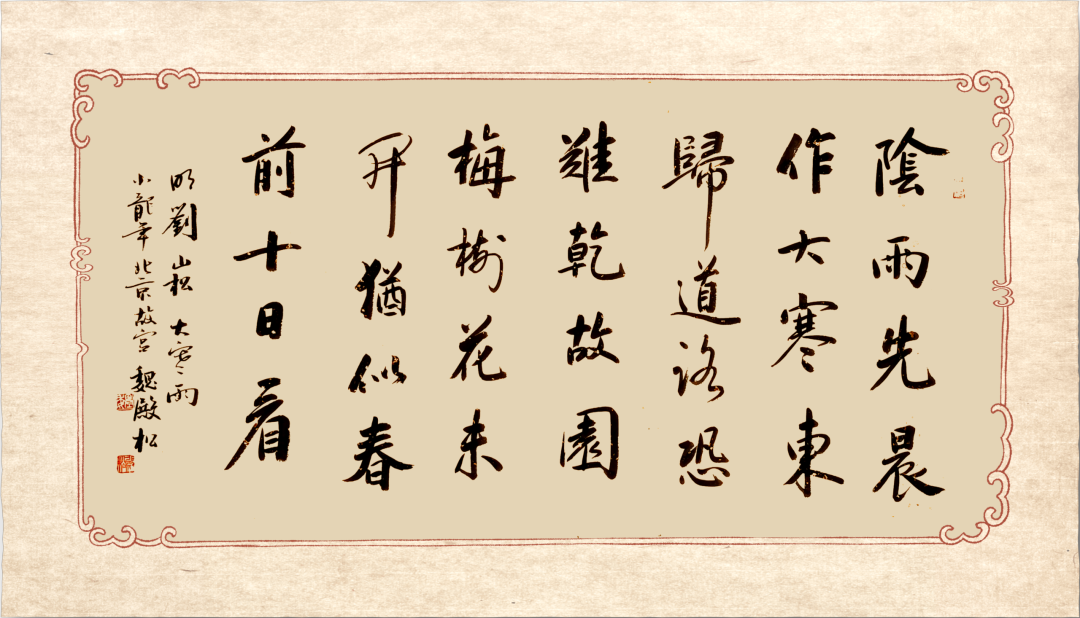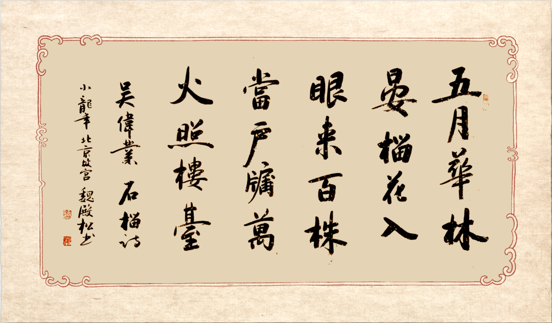 魏殿松是从故宫博物院走出的书法家,多年在故宫学习研究并倡导宣传皇宫“馆阁体”书法,作品具有“魏晋风、殿堂韵、松柏骨”的美誉而受到广泛好评。近年来,“紫宸清韵一一魏殿松书法系列展”,曾在首都博物馆、恭王府博物馆、保利艺术馆、扬州个园、南阳市图书馆、深圳证交所博物馆等三十多处举行个人书法展。其作品端庄厚重,中正平和的“皇宫”气象,深受好评,曾为全国各地的文化场所以及公园、学校、企业、寺院等处题词。作品被故宫博物院、人民大会堂、恭王府以及中国香港、中国澳门、新加坡、日本、韩国等国家和地区的艺术馆收藏。作品在中国嘉德、北京保利、北京翰海、北京荣宝斋等拍出较好成绩,受到社会各界书画爱好者及收藏者的关注。