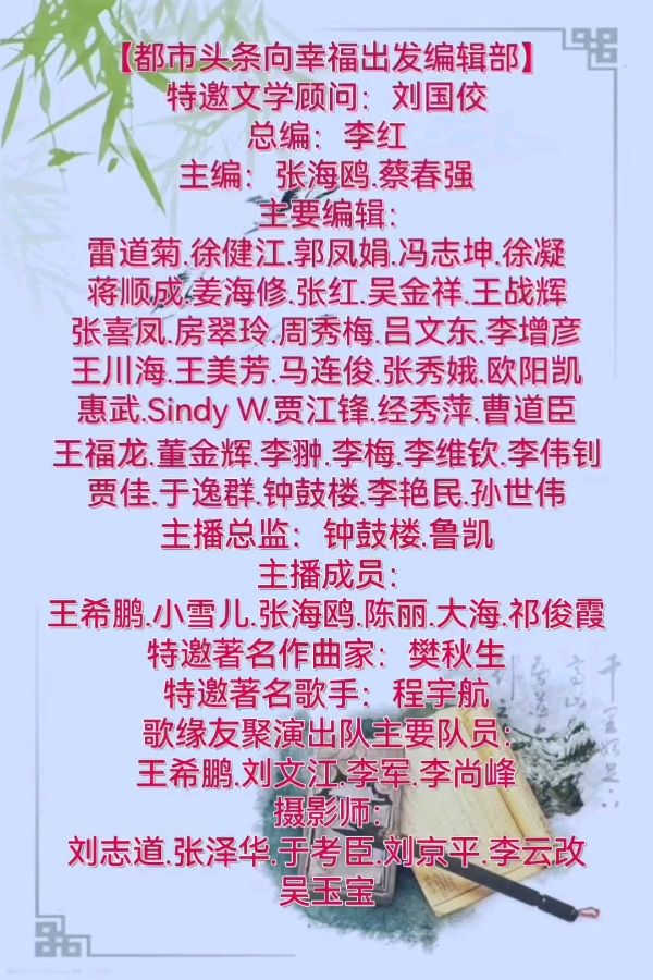 都市头条因您而精彩!感恩相遇【都市头条.爱心传递】【沽河一叶舟头条号】【都市头条向幸福出发文学社】【共赏好诗词头条号】【河头店文学社】。【都市头条向幸福出发编辑部】下设50个编辑窗口!如下:【主编.李红】【儒子叟国娇】【在水一方】【影子】【真心对你】【荷塘月色文学社】【香文学社】【乡愁】【姜海修】【品墨竹】【你安好我安心】【西门吹雪】【雪冰心】【吴金祥】【雨后初晴】【清风入心菲】【黎明】【布衣诵者】【警剑、】【五之堂主】【徐凝】【清风明月】【王川海】【春意盎然】【笑语如初】【马老头子】【琴韵】【凯翁】【惠武】【忘忧草】【孟浩然诗社】【清波微澜】【西湖】【江南】【阳春三月下扬州】【千里与君同】【一轮明月】【同醉唐风宋雨中】【诗意】【诗意朦胧】【田园风情】【诗情】【书香】【墨兰】【小雅】【鸿雁】【一城故事】【一帘幽梦】【蓝天白云】【孙世伟】本团队下设66个专题!如下:【都市头条.爱心传递】【都市头条向幸福出发编辑部】【都市头条向幸福出发文学社】【河头店文学社】【沽河一叶舟】【歌缘友聚】【文学范耕净土】【中医中药益寿延年】【共赏好诗词】【两袖清风扣篱门】【有道则见无道则隐】【莱西头条】【河头店头条】【唐风宋雨寄君情】【千里与君同】【同醉唐风宋雨中】【有缘千里来相会】【唐诗宋词知多少】【东风送情笛声悠】【春风十里不如你】【春有百花秋有月】【蓝天白云书屋】【都市茅棚】【温馨书苑】【月湖草堂*】【闲庭竹韵】【真心诗苑】【荷塘月色文学社】【香文学社】【南湖書香斋文学社】【关注社会热爱生活】【清风入心菲】【安好】【布衣诵者】【警剑、】【五之堂主】【五之堂主/新诗集】【五之堂主/系列词律分享】【五之堂主格律诗词专题】【徐凝】【诗心不老】【研学之鹿】【高山流水遇知音】【情与感】【弓长杂谈】【诗意朦胧】【心有灵犀】【诗意】【灵犀】【田园风情】【宁静致远】【书香】【墨香】【红梅】【墨兰】【诗情】【画意】【大雅】【小雅】【空谷幽兰】【幽芳逸致】【鸿雁】【轻舟】。