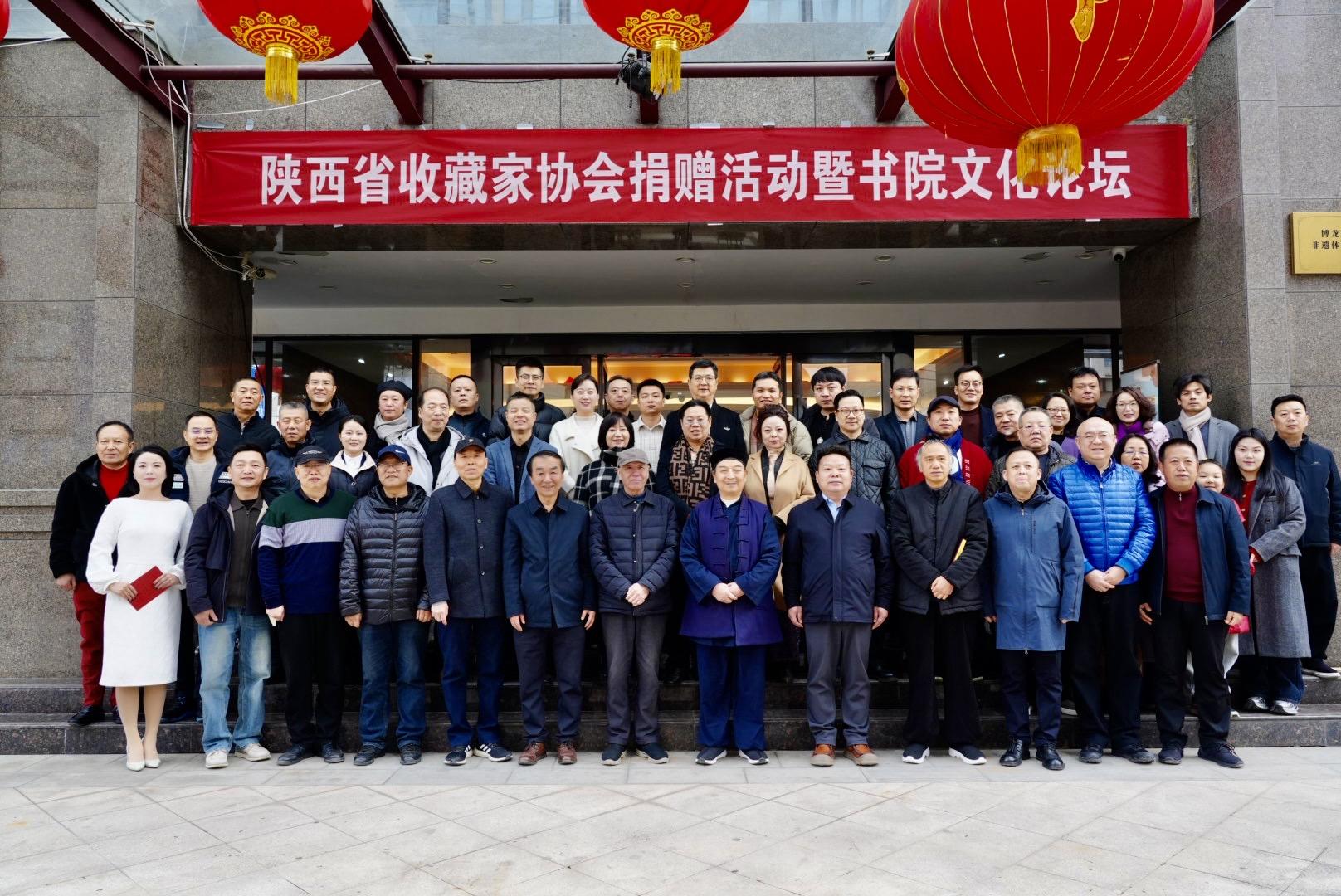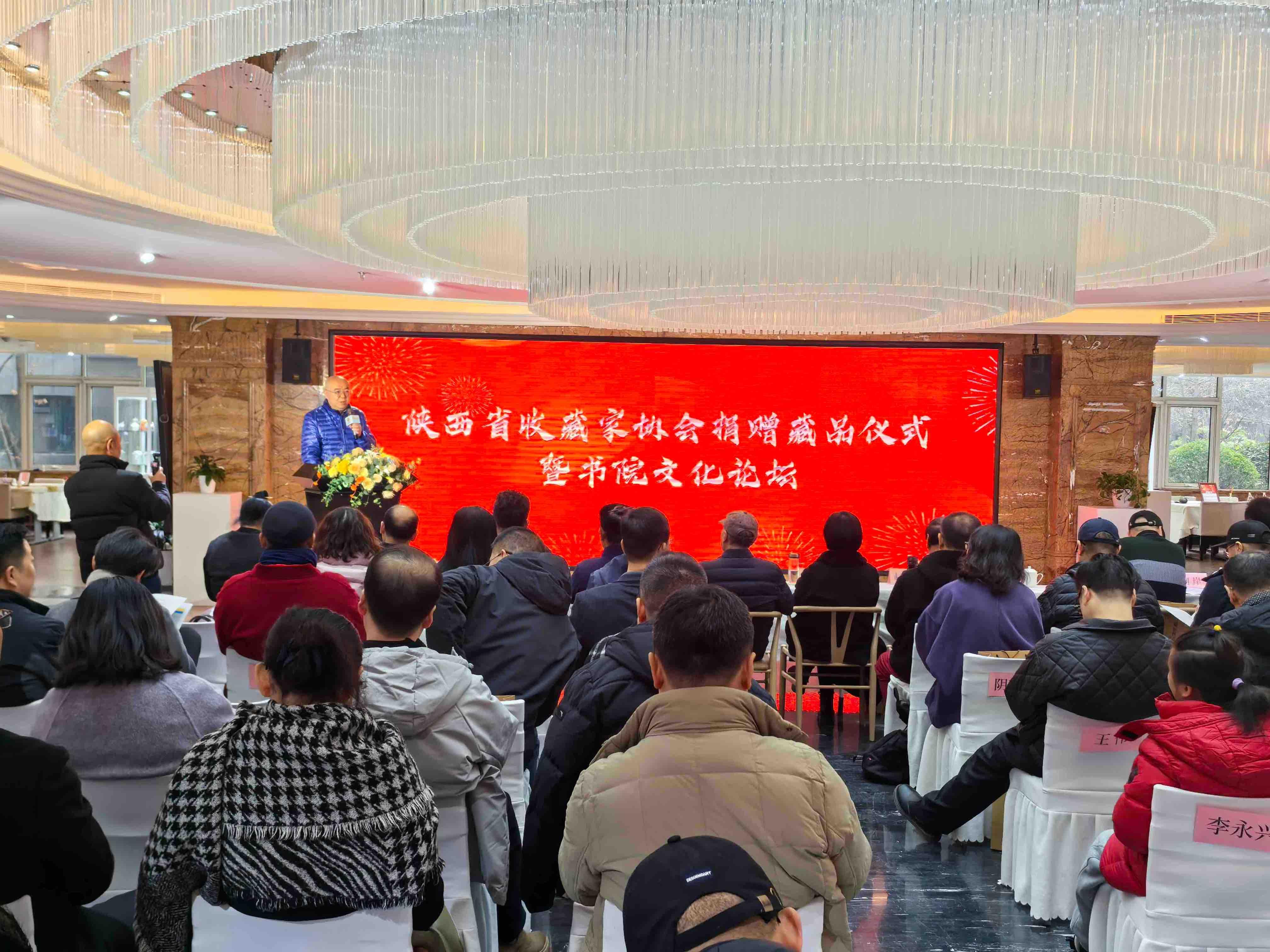 活动在庄重而热烈的氛围中拉开序幕。作为主办方,陕西省收藏家协会向鄠邑重阳书院、临潼骊山书院、西安关中书院等承载着千年文脉的传统书院机构,捐赠了一批精美的明清石雕作品与百余种珍贵图书。尤为值得一提的是,所赠书籍均系协会会员与藏家个人编撰出版的心血之作,这些典籍文献从私人书斋走向公共书院,完成了从个人学术成果到社会共享资源的意义升华。