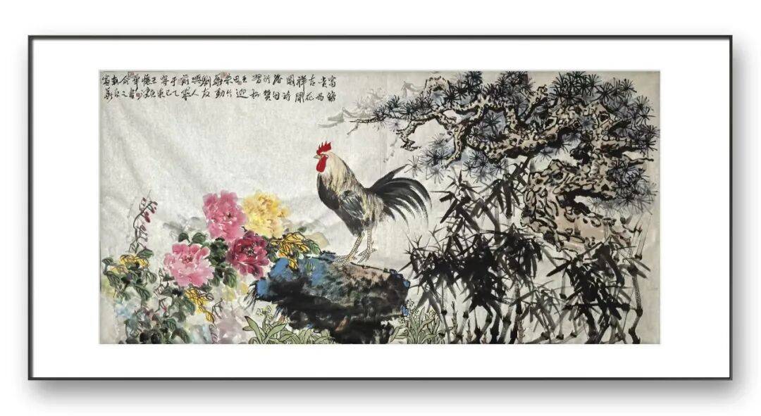 双师合璧,贵在理念相融、技法互补,方能碰撞出独特的艺术火花。刘兴前先生深耕大写意花鸟多年,尤擅刻画禽鸟神态,其艺术之路根植于传统文人画的雅致,又融入军旅生涯赋予的雄浑气度,笔墨刚劲洒脱、力透纸背。他笔下的禽鸟,无论是昂首昂扬的雄鸡,还是优雅从容的仙鹤,皆以细腻线条勾勒形态,以浓淡墨色凸显神韵,形神兼备、气韵生动,将生灵的精气神展现得淋漓尽致。