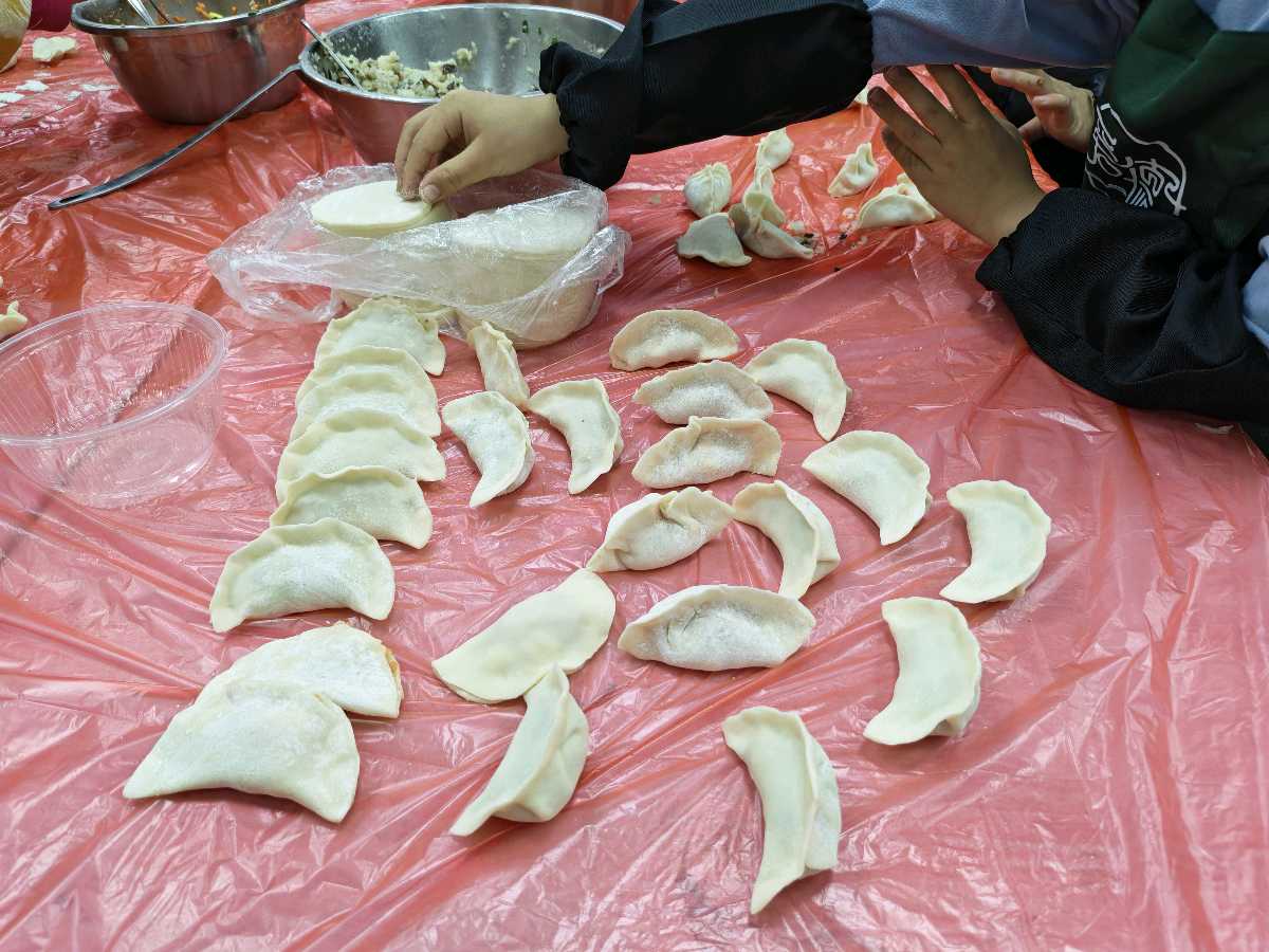 活动现场年味十足,案板、面皮、馅料整齐摆放,家长与孩子分工协作、默契配合。指尖翻飞间,圆润饱满的饺子接连成型,有的小巧玲珑、有的憨态可掬,饱含着对新年的美好期许。