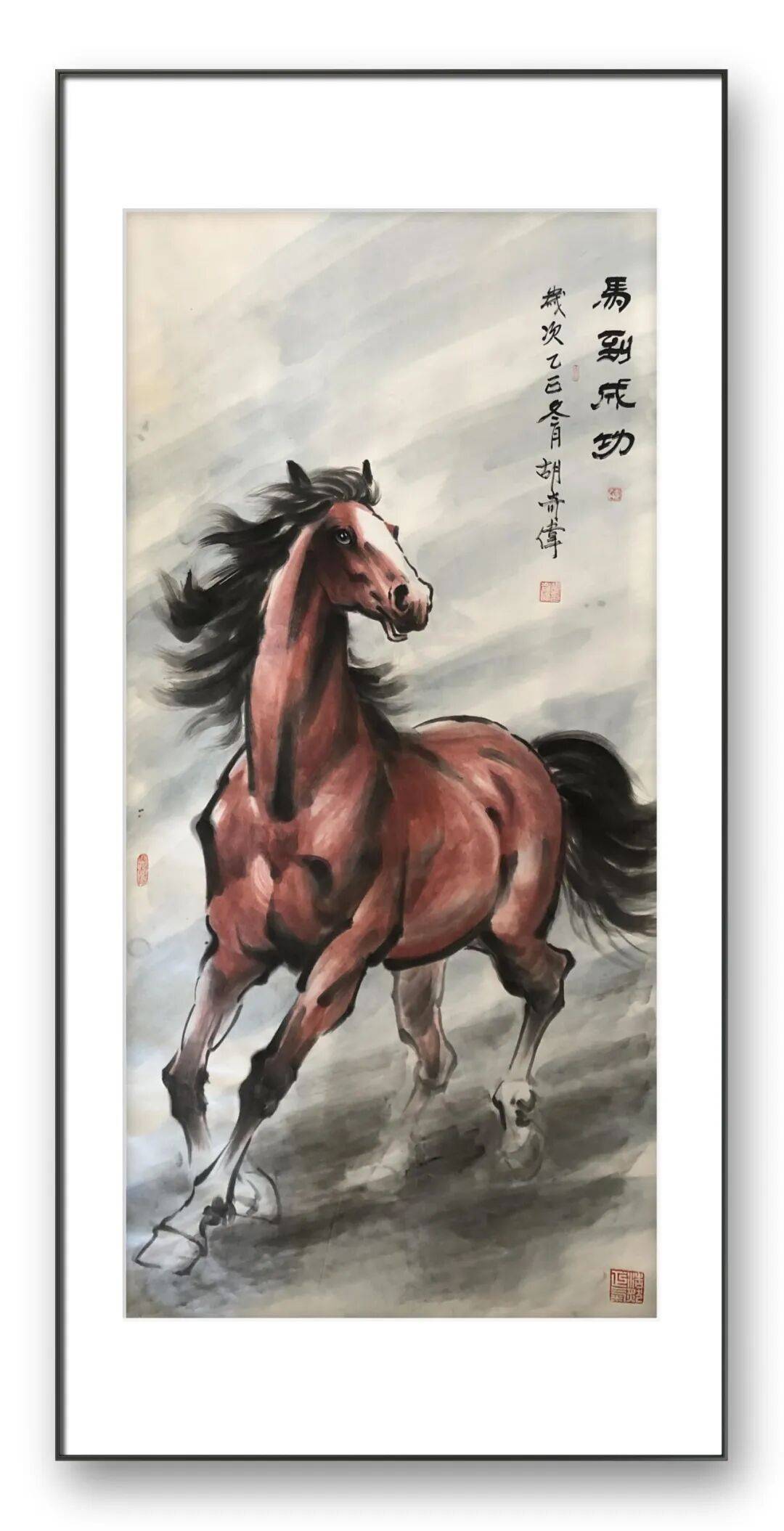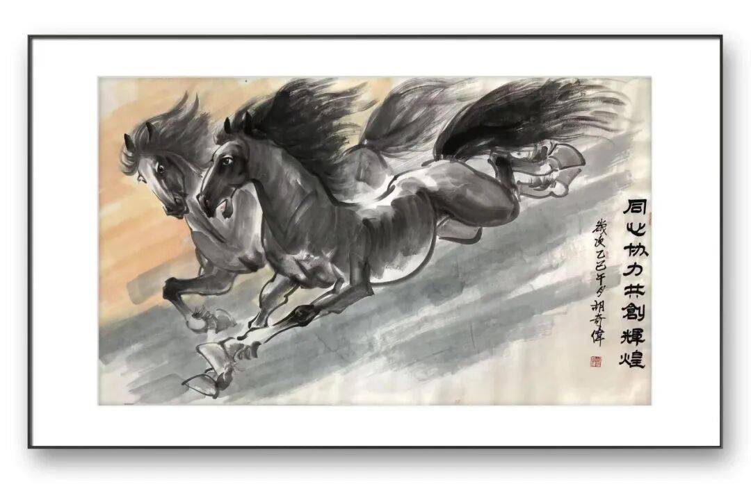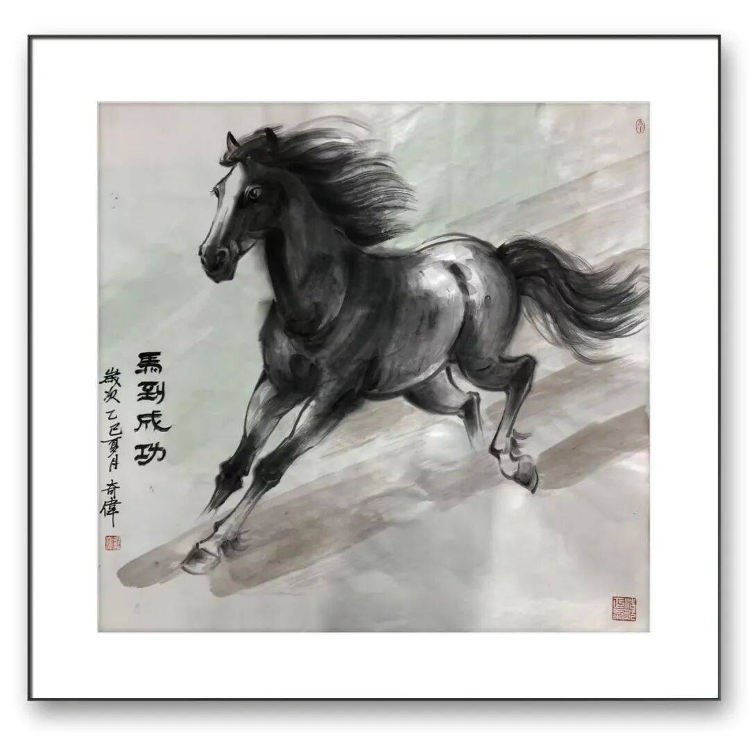 艺术的至高境界,是“以形写神、以物载情”,胡奇伟先生的马画之所以能打动人心,不仅在于技法的精妙与构图的巧思,更在于其作品超越了物象刻画,融入了对自然、生活的深刻感悟与对精神气节的执着追求,兼具形似、神似与意似,彰显出较高的思想内涵与人文价值。工写融韵,马跃丹青。胡奇伟先生以华釜山人的淡泊之心,以数十年如一日的执着坚守,用笔墨描绘出骏马的雄姿与神韵,用情怀赋予马画深刻的精神内涵。