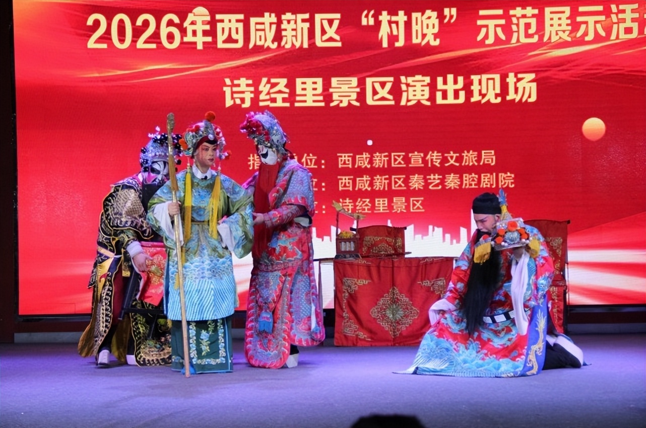 2026年2月9日下午二点半,西咸新区“春晚”示范展示活动在诗经里景区隆重举行。这场备受瞩目的文化盛事是由西咸新区文旅局指导,西咸新区秦艺秦腔剧院主办,诗经里景区协办的一场重大演出活动。吸引了众多嘉宾与观众的热情参与,现场气氛热烈,秦声秦韵贯穿了全过程。
