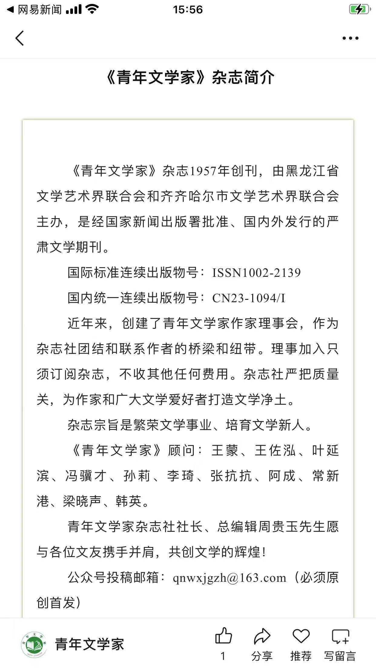 《青年文学家》2026年1月下旬刊发表知名评论家史传统撰写的评论“裂裳织心:赵晓林《补裳》的创伤修复诗学与女性救赎哲学”。全文如下(以《青年文学家》实际发表为准):