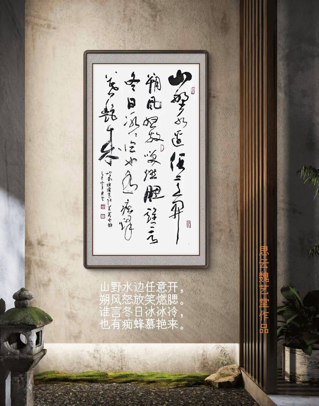 作为海派魏碑(新魏体书法)传承人,陈智云先生并未局限于北方魏碑的雄浑格调,而是主动吸纳海派书法“碑帖融合”的艺术理念,将南方帖学的灵秀与海派文化的包容融入魏碑创作中。海派书法自近代以来,便以“兼容并蓄、勇于创新”为特色,打破碑帖对立的壁垒,实现了北碑雄强与南帖流美的完美融合,胡问遂等海派名家便是碑帖融合的典范。陈智云先生深受海派书法精神的影响,在传承魏碑古法的基础上,积极借鉴二王帖学的灵动笔法与文人气息,将行书的流畅、草书的飘逸融入魏碑创作,打破了传统魏碑笔法的束缚,使魏碑书法在保持雄浑厚重本色的同时,增添了笔墨的灵动感与韵律感。这种传承不是墨守成规的复制,而是在深刻理解传统的基础上,对魏碑艺术的创造性继承,既守住了魏碑的“碑骨”,又融入了帖学的“帖韵”,形成了“碑骨帖韵、刚柔并济”的独特艺术风格,彰显了海派魏碑的鲜明特色。
