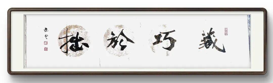 除了刚柔并济的笔法特点,陈智云先生的用笔还兼具“灵动多变”的特质。他善于运用浓淡枯润的墨色变化,使作品层次分明,富有立体感,浓墨处如苍松古柏,沉稳厚重;淡墨处似云雾缭绕,空灵飘逸;枯墨处笔力苍劲,意趣盎然;润墨处笔墨饱满,灵动流畅。通过墨色的巧妙变化,他将自己的情感与意境融入作品之中,使静止的墨线产生动态美感,让作品更具生命力。在笔法的运用上,他还注重笔画间的呼应关系,通过“断连虚实”的巧妙处理,实现“笔断意连”的艺术效果,使字与字、行与行之间气脉贯通,浑然一体。无论是大字还是小字,他都能精准把控用笔的轻重、缓急、提按、顿挫,大字雄浑大气,笔力千钧,尽显魏碑的磅礴气势;小字精致细腻,笔法灵动,不失笔墨的灵秀之韵,做到“大字不笨拙,小字不纤弱”。
