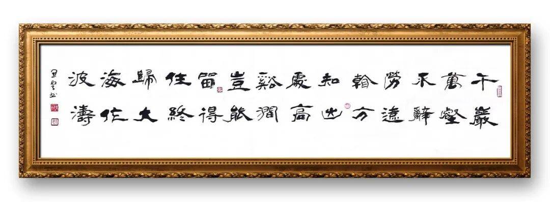 先生的笔法,最具特色的便是“刚柔并济”,这一点在其魏碑作品中体现得尤为鲜明。他继承了魏碑书法方笔为主的传统,起笔侧锋切入,行笔中锋铺毫,收笔斩钉截铁,笔画如钢打铁铸,尽显魏碑的雄浑刚健之气,让人感受到金石铿锵的力量。观其魏碑楷书,点画峻厚,笔力雄强,横画挺拔有力,竖画沉稳端庄,撇捺舒展有度,转折处方劲利落,如斧劈刀削,极具视觉冲击力;但同时,他又融入帖学的圆笔笔法,在方劲之中增添温润之感,使笔画避免了生硬刻板,多了几分灵动流畅。例如,他书写的魏碑对联,每一笔都力道十足,却又不失笔墨的细腻,方笔的刚劲与圆笔的温润相互映衬,刚健中透出柔美,雄浑中蕴含灵秀,展现出“润如春雨,燥似秋风”的笔墨趣味。