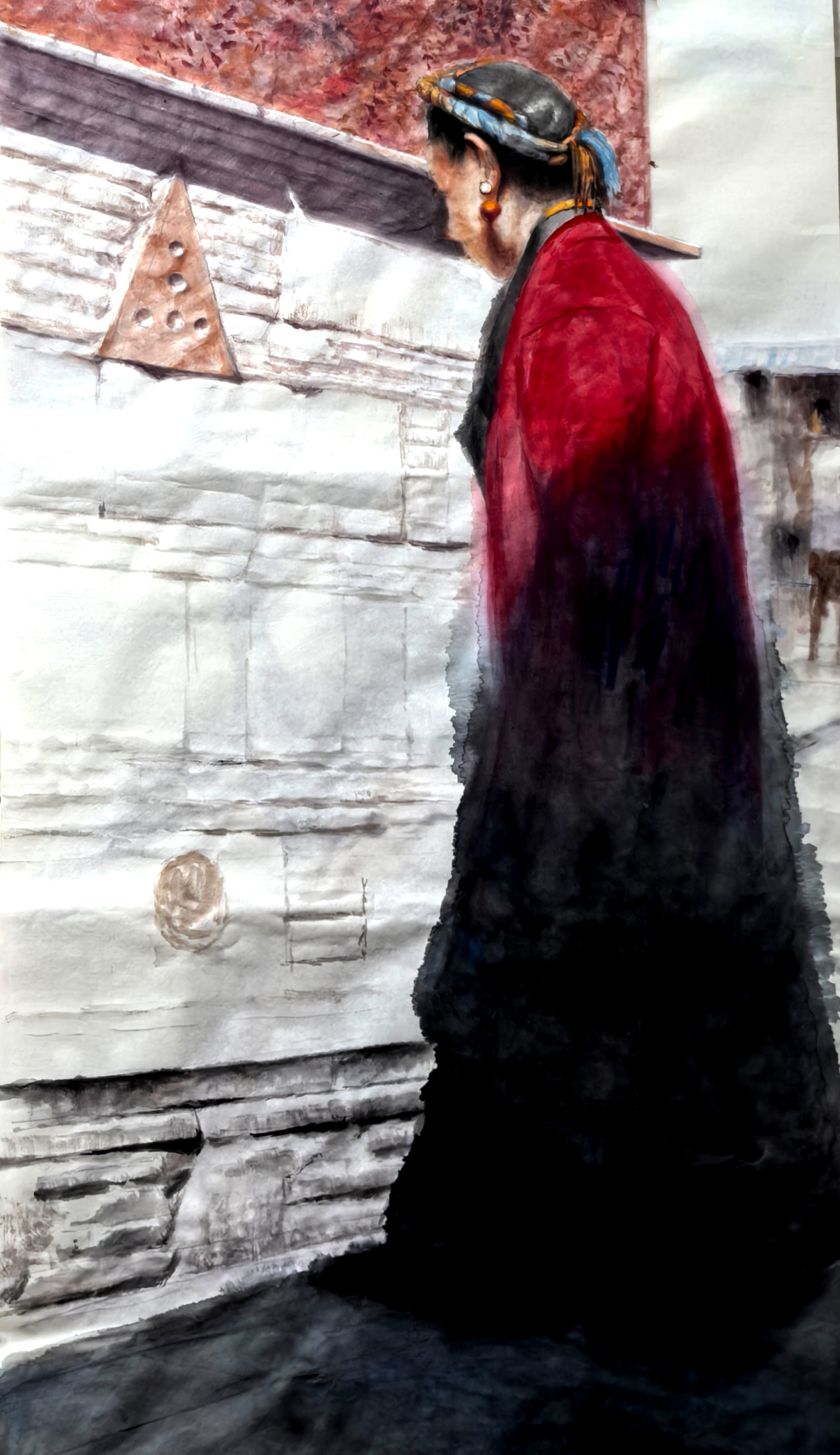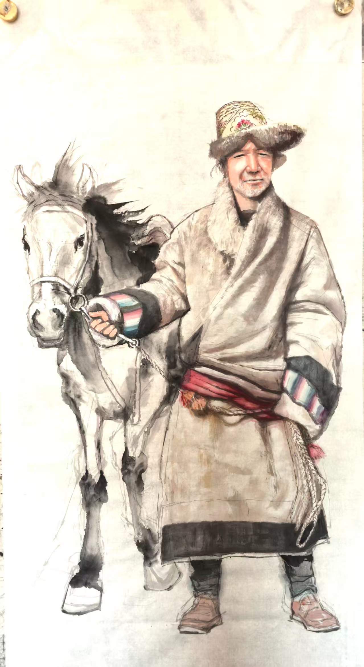 先生以心入画,以情铸笔,笔下的人物从不是冰冷的描摹,而是有魂、有灵、有温度的生命。高原的风,穿过笔墨拂过面庞;濠江的云,伴着墨香漫过心间。一笔一画,是对风土人情的敬畏;一晕一染,是对人间美好的礼赞。线条如诗,墨韵如歌,将民族风情、时代风貌、人间温情揉作一纸丹青,尽显炉火纯青的笔墨功力与悲悯宽厚的艺术情怀。