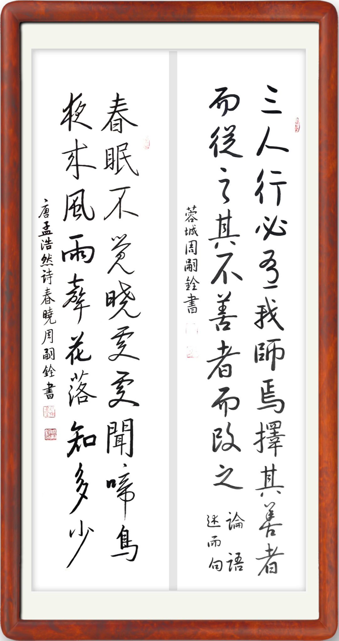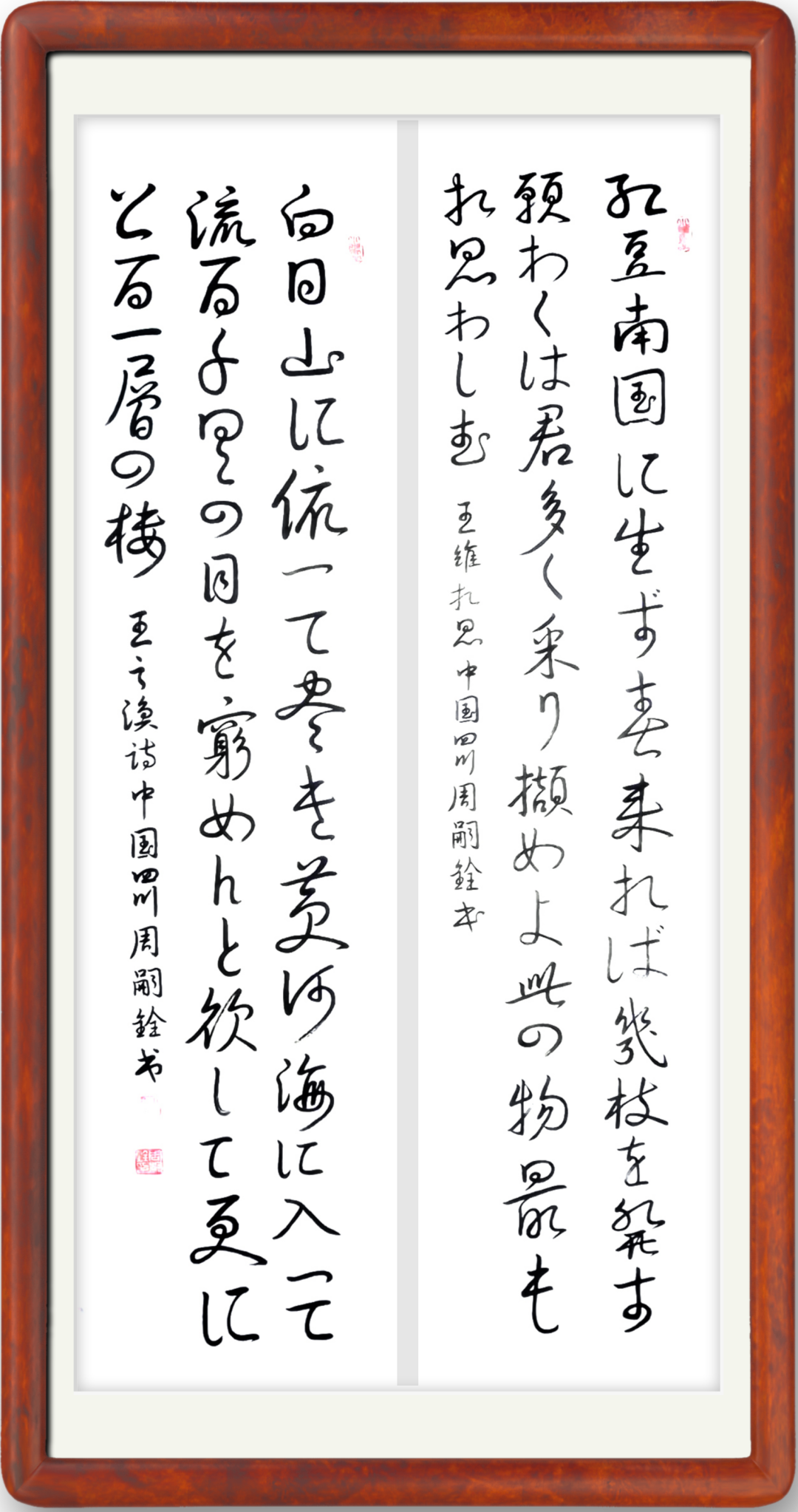 川蜀人杰地灵,文化贤家辈出。骆成骧是自蜀地走出的清代状元,饱读诗书,德洁行贞,代代敬仰。其家学相续,传三代至侄孙周嗣铨先生,仍旧书香盈庭,成为一代贤才。作为名门后代,周嗣铨先生自幼慧灵而努力,博读经典,历练书法,成为骆门书风的传人,写得一手锦书金字,可谓是弘扬家学自成族内精英,弘扬国学是谓当代大贤! 周嗣铨先生的书法习成,有很深的碑帖功夫,整体风格是以碑立骨,以帖传神的上上书!他从碑字中历练方笔的卓劲,从帖学中寻觅牵丝映带的天朗气清,从不把书法写得江湖粗糙,必定是法度严谨的正宗品质。所以看他的书法,可以体验到高古典雅,可以看得晋韵唐法,当然宋书之意,明清文人书法的执着劲也是一览无余。观览他的书法作品,可以全视角,多层次地解析中国书法艺术的源与流,流与变!源流激变的综合,成为书法龙脉的古今相续,可以令书法渊妙代不绝人,文化正宗借古开今! 书有五体是大约分类,因为篆有大与小之区分,小篆则又有泰山碑的正大气象类,还有峄山碑的圆活生动类。更莫说隶书有十碑之别,楷书有颜柳欧赵诸帖。在书法史上,唯有先深师圣贤之法,再作自我之风,方可以取得遂心应手独树一帜的成就。周嗣铨先生创作书法,正是走过了汲取贤法,再作自我运化的修养路径,不但写得诸书皆成,而且可以把每一种书法再生发出不同的丰姿多神,掌握数十种书体的创作,各有精彩的表现力,以一人之力量,创建了一个书体博物馆式的博大书风体系。 在他的书法作品体系里游目骋怀,可以经遇楷精法详的塑造,也可以看到隶书左掠右挑的精彩,行书唯妙惟肖,伸缩得体,开阖优雅!骆派书风,在周嗣铨的拓展下,形成了百花可以齐放的文化梦想。一字写成形神二十几类别,不仅仅可以让人觉察到书法形体变化的奇观要妙,还可以深刻体验到中国字、中国文化的博大精深。所以,他的书法创作不仅仅是书法本身的能力体现,还是惊艳全世界的文化自信大格局。他不仅能把传统书法写得万般精彩,还有日文书法的精研独创,打破了书法文化国际交际壁垒,为书法与世界文化的融合找到了新的通道!