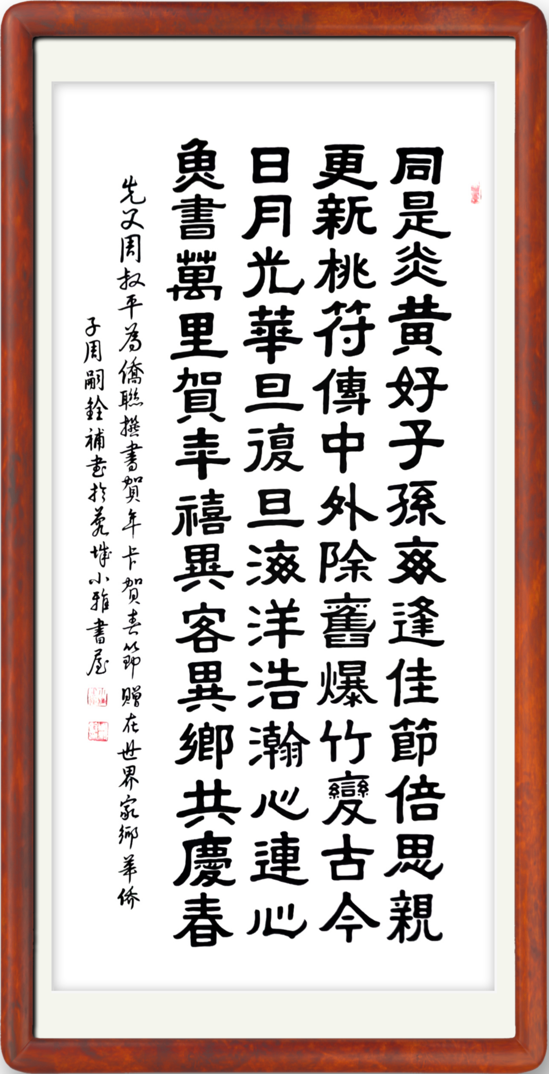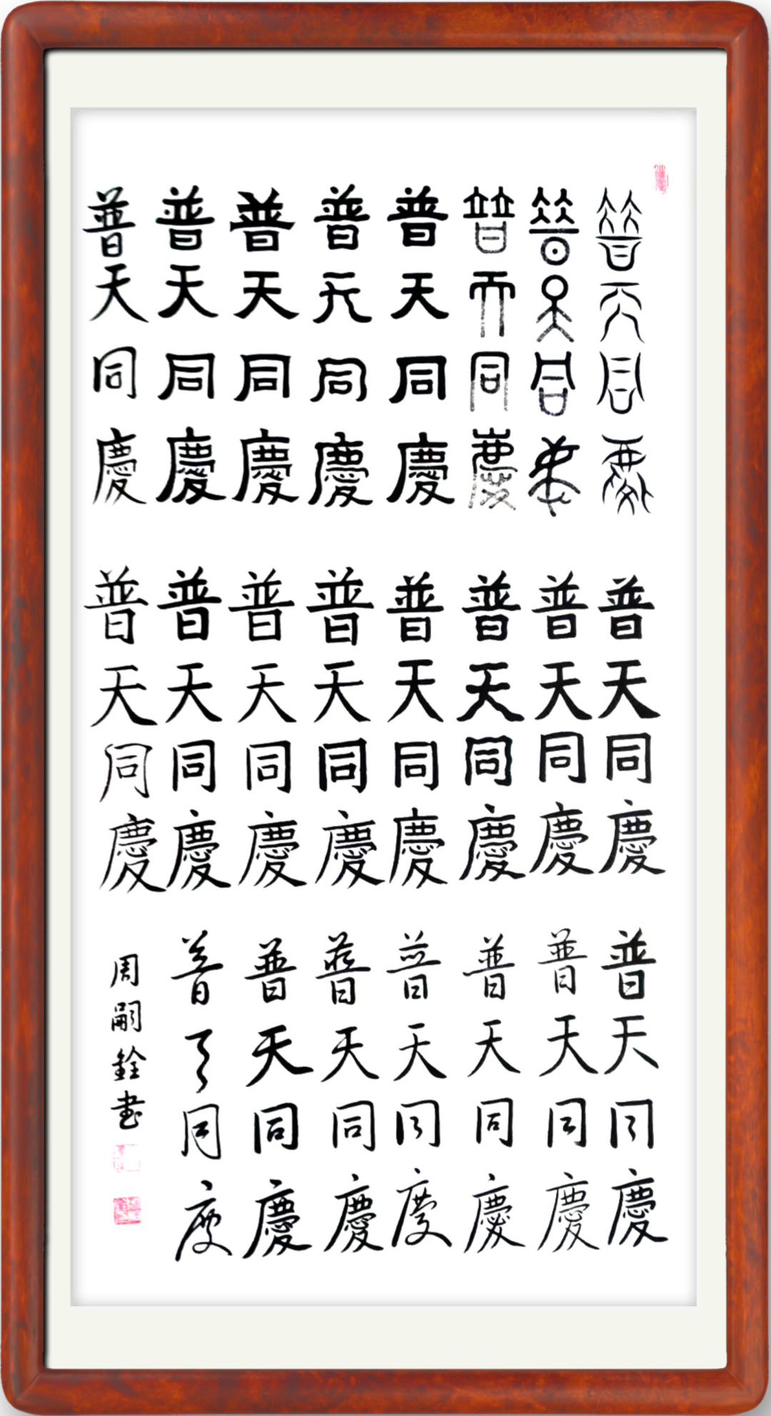 笔墨随时代,龙脉古今传。周嗣铨先生执笔在手,用笔在心,落笔显字则在修养!数十年的文化积累,让他在书法界功夫不俗,让他在文化体系内地位崇高。所以他的书法不仅仅是审美的佳作,也是收藏的珍贵。得一件而入箱箧,价值不可估量,贵如和璧隋珠!追寻他的书法足迹,可以全面审视东方文化的精彩魅力。家学助国学,功勋卓越,盛世国士!