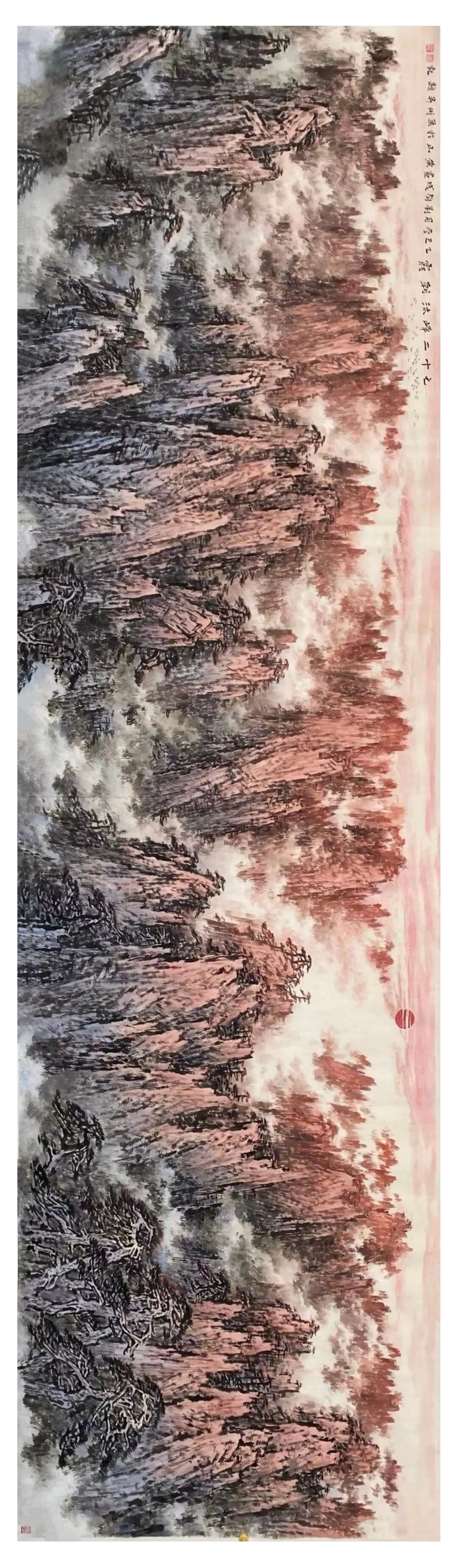 “丹青载道”,是中国山水画千年不变的精神内核,以山水为媒,承载天地正气,书写家国情怀;“笔墨传情”,是画者直抒胸臆的艺术语言,以笔墨为桥,联结古今意韵,传递真挚惦念。2026年适逢丙午,五行属火,象征着炽热的生机与腾飞的气象。这份“火”的昂扬,恰与山水之沉稳相生相成——正如骏马驰骋于锦绣大地,时代奋进于壮阔征程,也正是刘有成先生画作中“静中有动、气象万千”的生动写照。