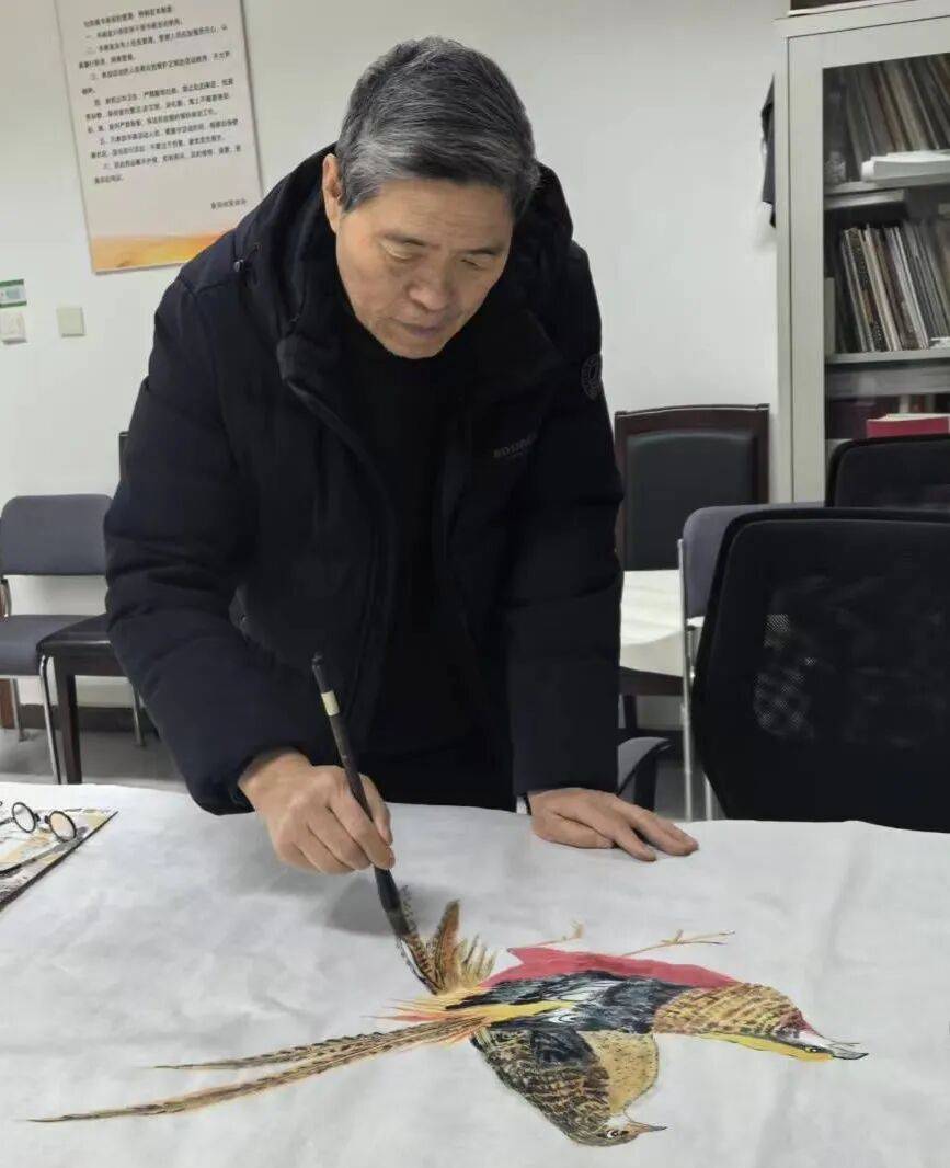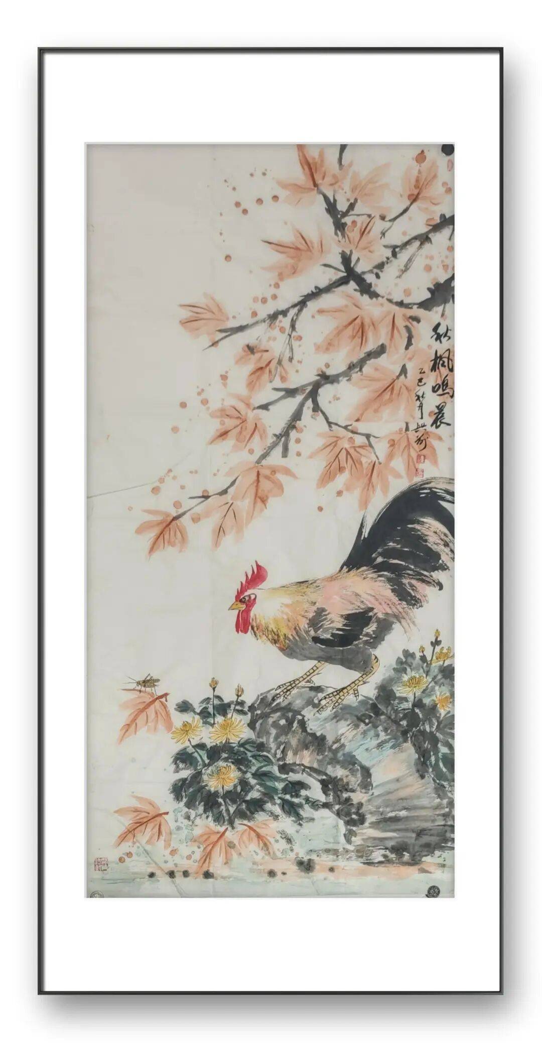 在花鸟绘画中,刘兴前老师对“形”与“神”的把握堪称精妙。他注重对物象的细致观察,无论是禽鸟的羽翼纹理、神态眼神,还是花卉的舒展姿态、明暗层次,他都刻画得细致入微、栩栩如生。他笔下的雄鸡,冠红如火,尾黑如墨,爪利似剑,昂首挺立间透着威武雄壮之气,寥寥几笔,便将雄鸡的昂扬斗志与精气神展现得淋漓尽致,因此也有“军中画鸡王”的美誉;他笔下的雏鸡,小巧玲珑、憨态可掬,或低头觅食,或嬉戏打闹,灵动可爱,充满了童真童趣;他笔下的花卉,或含苞待放,或肆意绽放,色彩清新淡雅,笔墨细腻柔和,既有牡丹的雍容华贵,又有梅花的傲骨寒霜,既有荷花的清雅高洁,又有菊花的坚韧不屈,每一种花卉都被赋予了独特的精神内涵。