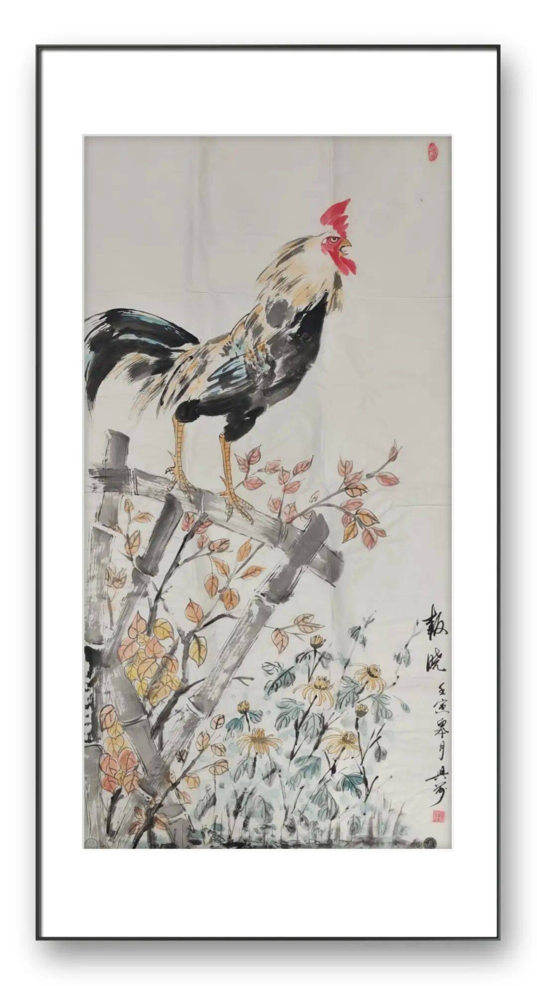 刘兴前老师的作品,清新雅丽而不脱离民间的亲切朴实,率真自然而毫无粗放疏野之迹。这种艺术品格,正是他人格的写照。作为一位从军旅中走出来的艺术家,他的作品中始终洋溢着一种刚健、质朴、昂扬的精神气质,这种气质与他笔下的雄鸡形象相得益彰,共同构成了他艺术世界的独特魅力。