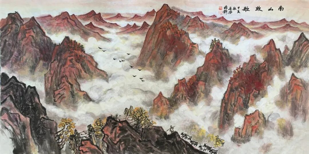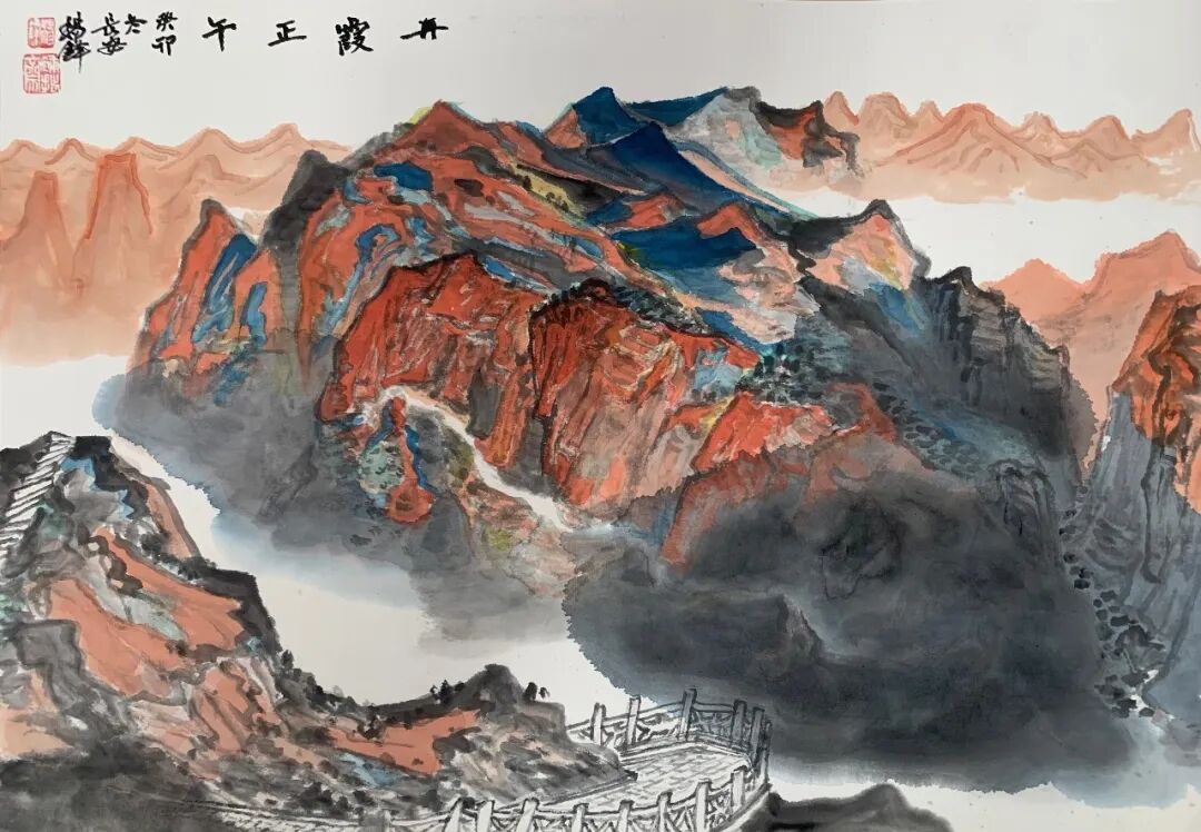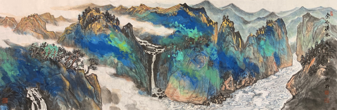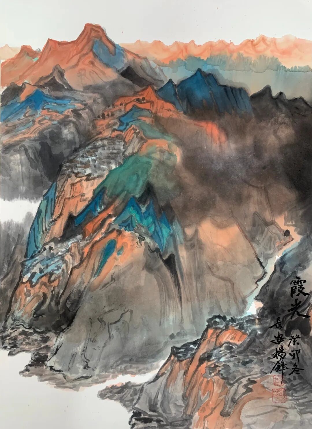 杨锋是长安人,十三朝古都的深厚积淀丰润了他绘画的根脉,秦岭的雄伟险峻造就了他绘画的品格,黄河水的汇纳百川滋养了他绘画的精神。因而,杨锋笔下的山水,在章法布局之际,蕴含着长安三万里的豪迈情怀;在墨色晕染之间,承续着中国山水精神的核心内涵;在内容表现之中,彰显着新时代新风貌的文化气息。
