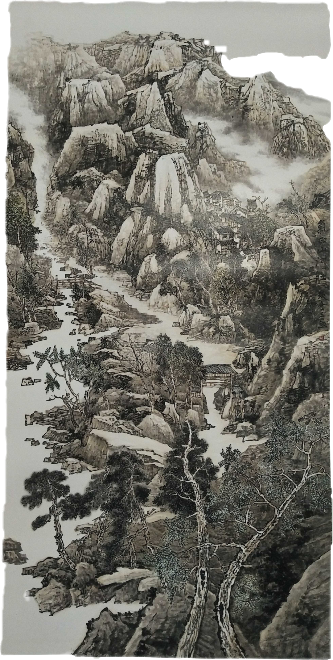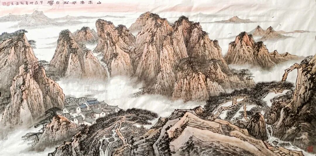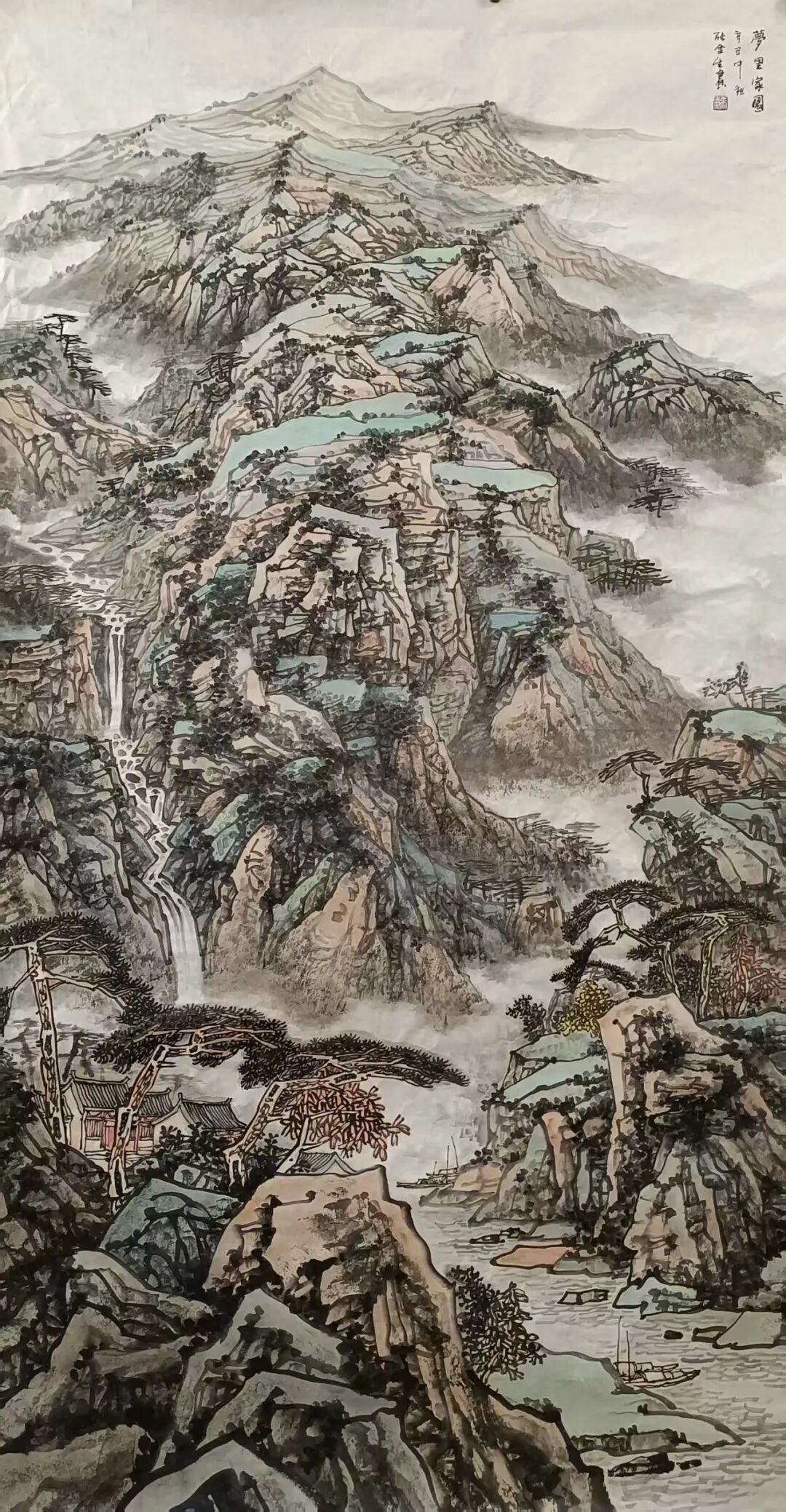 艺术的价值,从来不止于技法的娴熟,更在于作品能否“形神兼备、打动人心”。张金生的画作,最打动人的是其“于细微处见功底,于笔墨间藏意境”的特质。他擅画山水,笔下峰峦或雄奇挺拔,或层峦叠嶂,用苍劲的线条勾勒山石肌理,以“积墨法”晕染林木葱郁,再以淡墨点染云雾,让画面既有“重山复水”的厚重,又有“云雾缭绕”的空灵,观者仿佛能走进画中,感受“可行、可望、可游、可居”的山水之趣;他也善绘花鸟,不追求艳丽色彩的堆砌,而是以水墨的浓淡层次表现花叶的舒展、禽鸟的情态——一只栖枝的麻雀,寥寥数笔便灵动鲜活;一束绽放的梅兰,淡墨勾勒便风骨尽显。正是这种兼具技法精度与精神内涵的创作,让他的作品在国内外书画大赛中屡屡入选获奖,奖项的背后,是评委对其艺术水准的肯定,更是市场对其作品感染力的认可。
