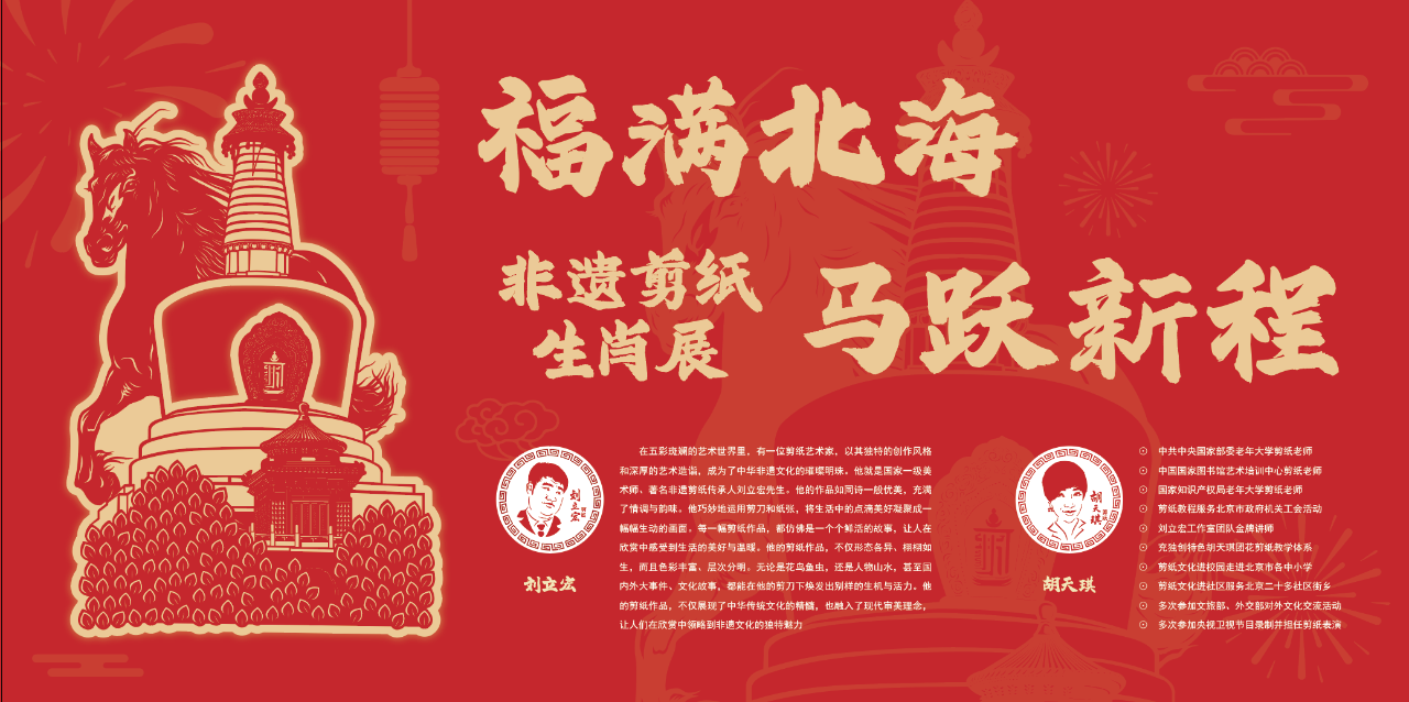 一纸剪马,踏春而来,或昂首奔腾,或温驯灵动,百马千姿,皆凝福韵。北海的亭台映剪纸,侨福芳草地的熊猫伴骏马,日坛公园的春风拂花影,三场展览,是师徒二人献给新春的礼赞,是非遗文化融入生活的盛景。红纸翻飞,剪的是生肖吉庆,绘的是山河锦绣;剪刀开合,凝的是匠心坚守,寄的是家国深情。