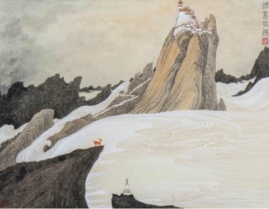 一、重彩青绿山水艺术。在继承传统晋唐大青绿山水的基础上,吸收了壁画、岩彩、唐卡等艺术形式和技法,大胆创新。近年来,以表现西藏雪域风情为题材,形成了其独特的艺术风格。
