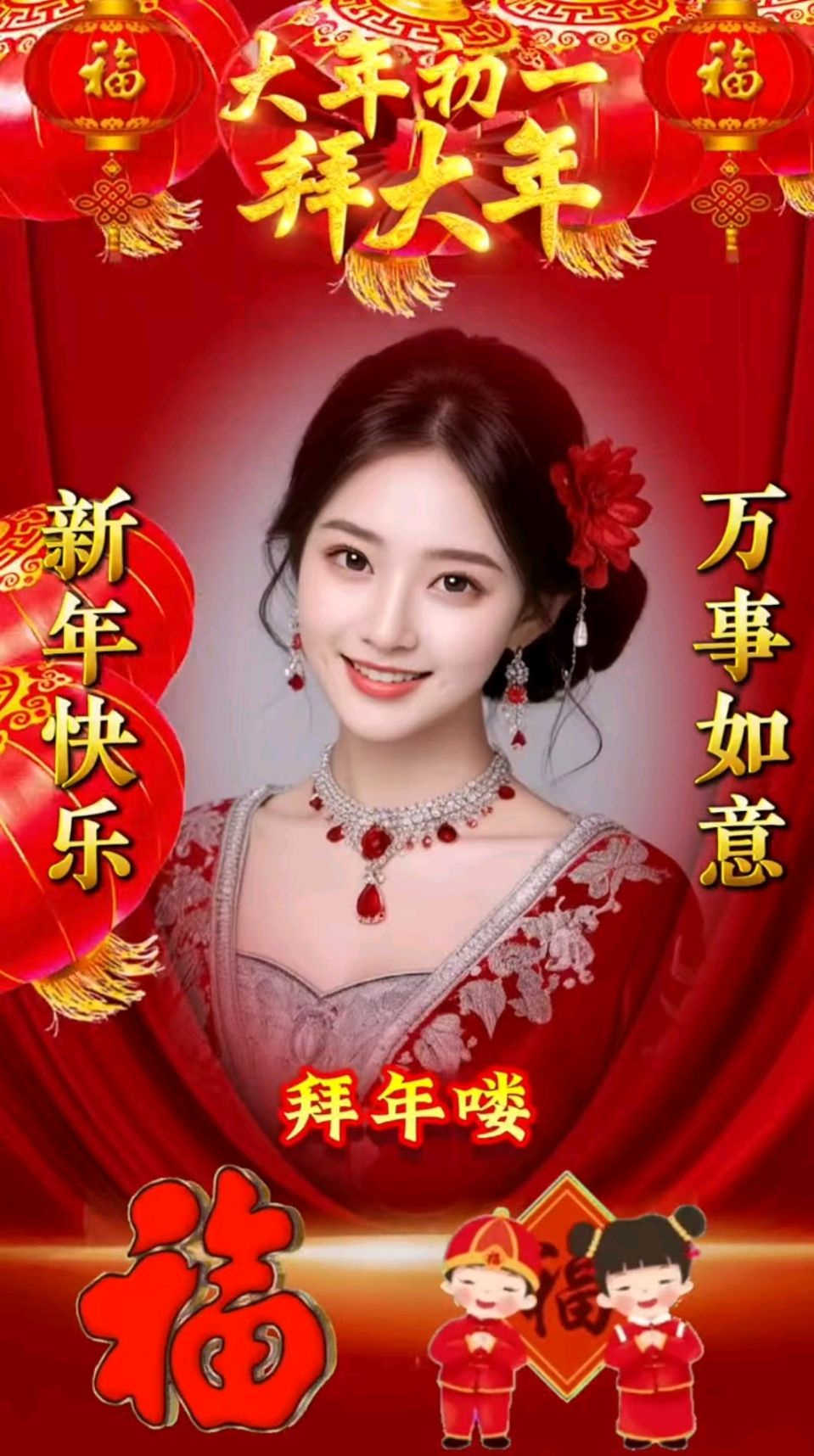 守岁团筵添福贵,拜年贺岁祝民丰。