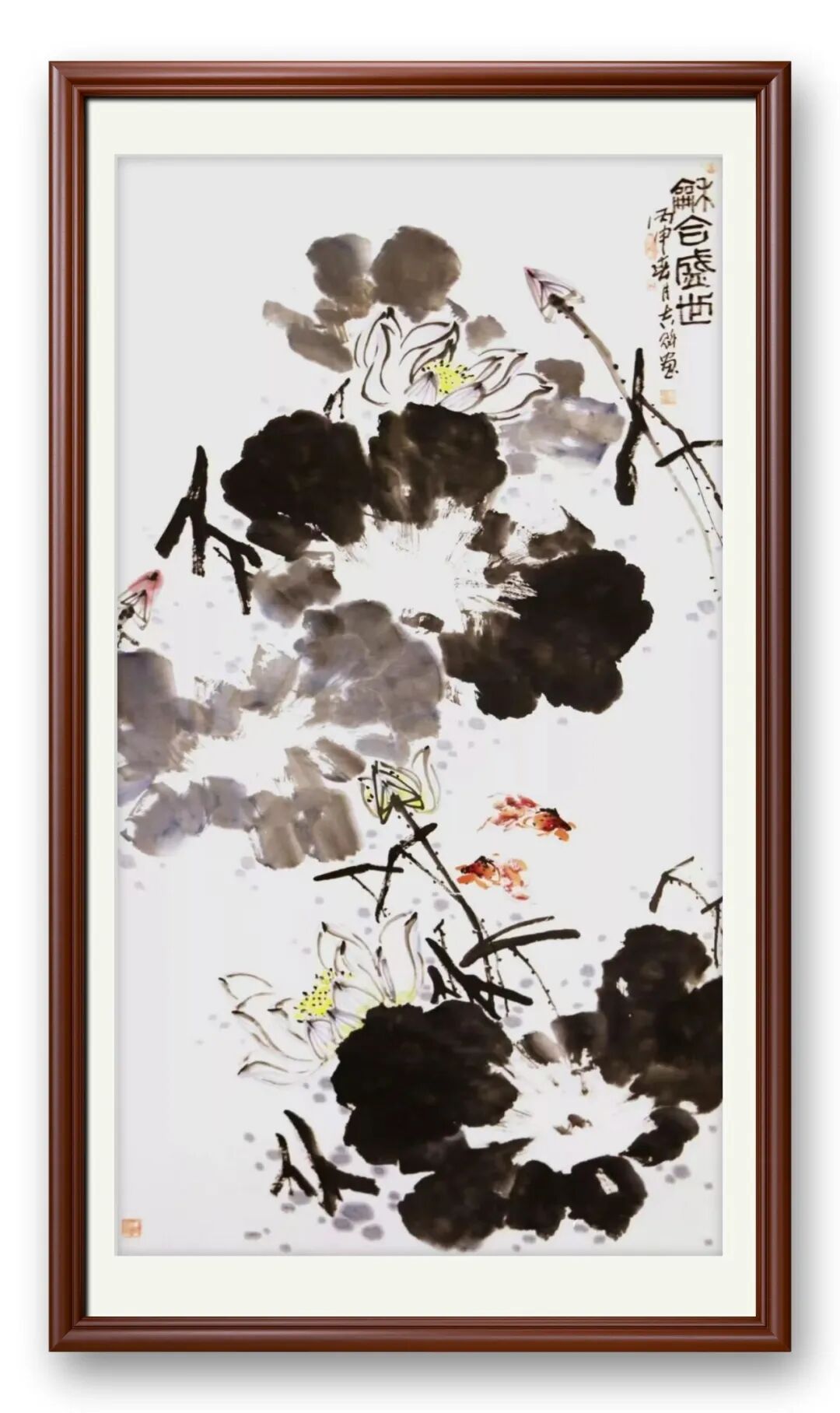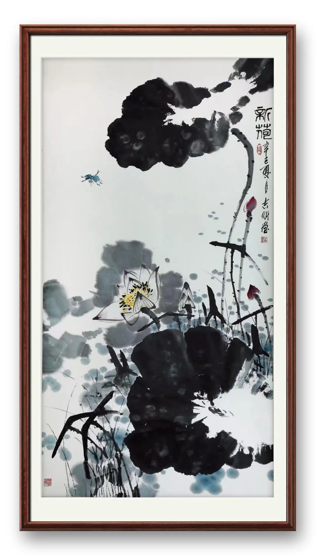 杨吉魁的笔墨,是承古而不泥古的通透。得齐白石弟子杨秀珍亲传,他深谙齐派泼辣酣畅、天趣自成的精髓,却未止步于技法的复刻。笔下荷叶浓淡干湿交织,墨色浑厚处见筋骨,空灵处藏意趣,恰合“无墨处皆成画”的古法;荷花勾勒简洁明快,红墨相映间,既葆有齐派的拙朴生机,又添几分文人画的隽雅劲爽。这种笔墨表达,绝非单纯的技法锤炼,而是其文学修养的具象化——数十年文史哲的积淀,让他能以笔墨为语,诉说对生命的体悟,使每一笔都兼具力度与温度。