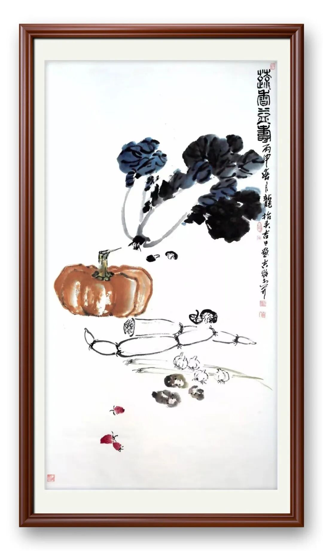 画品即人品,在杨吉魁的作品中得到了极致印证。他生性淡泊,甘守寂寞,将毕生心力倾注于笔墨与育人,这份平和与坚守,尽数化作画面的恬静与清健。大幅荷花巨作气宇轩昂,却无霸气浊气;小品蔬果灵动鲜活,亦无媚俗之态。笔墨间的从容不迫,恰是他人格修养的投射——宽人严己的品性、淡泊名利的心境,让作品挣脱了世俗的浮躁,尽显纯粹本真。
