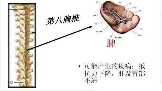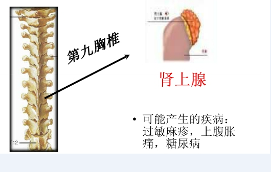 第八胸椎段:免疫功能低下、肝胆病、糖尿病、呕逆、尿频