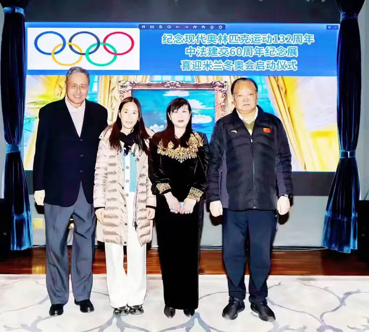 纪念现代奥林匹克运动会132周年及中法建交60周年纪念展、喜迎米兰冬奥会万里行活动与奥运冠军合影。